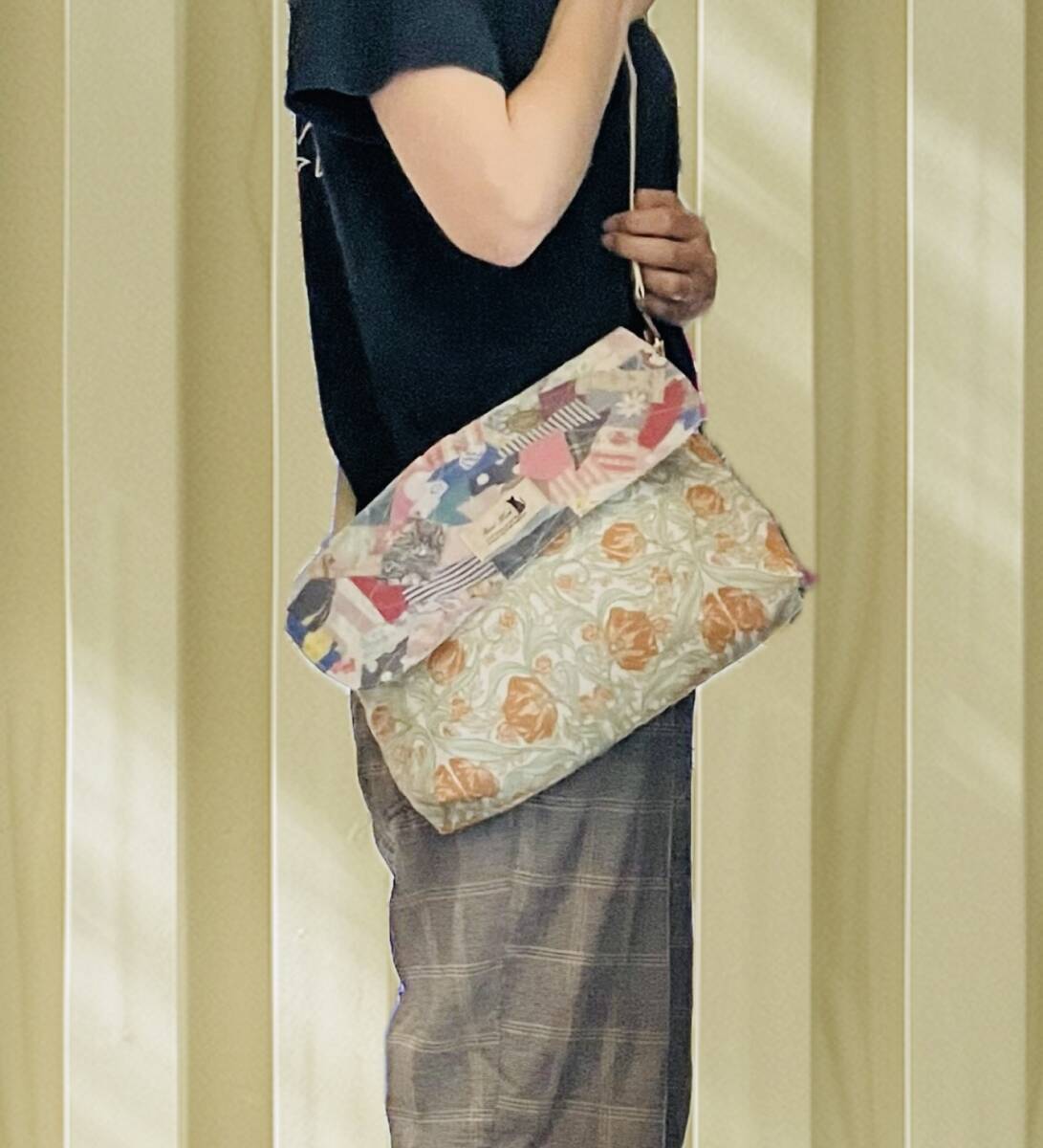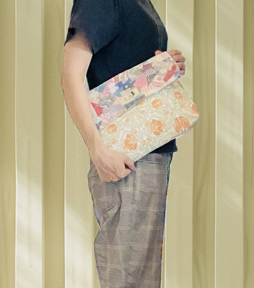 ☆ハンドメイドバッグ パッチワーク蓋と花柄のクラッチバッグ