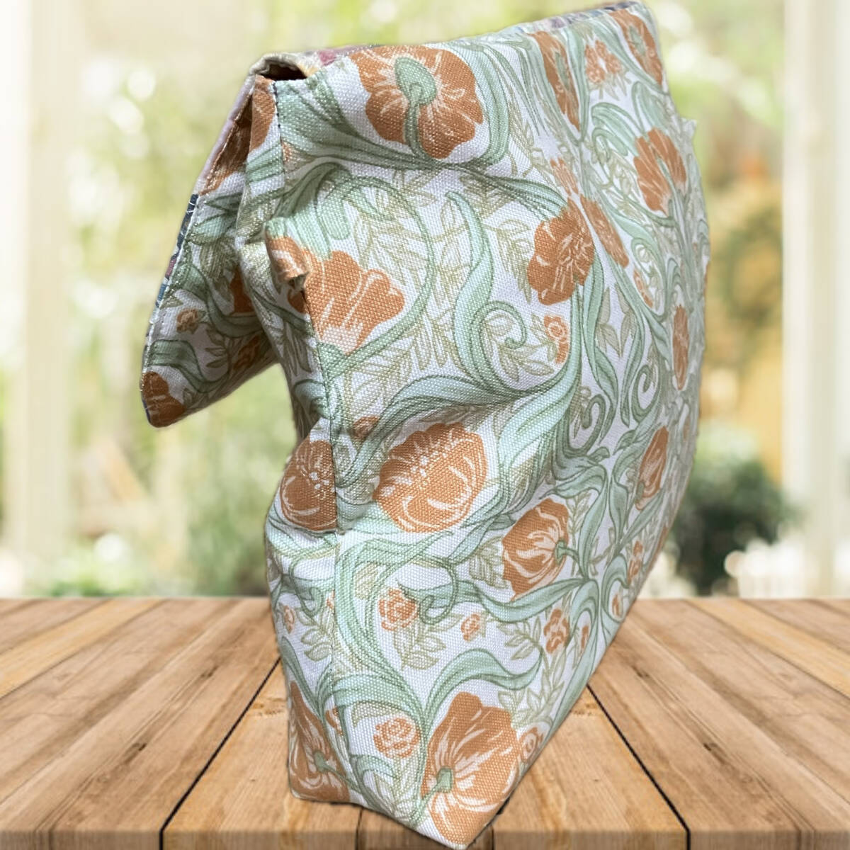 ☆蓋部分がはぎれとオーガンジーで縫い合わせたものになっております。マグネットホックで開閉できます。