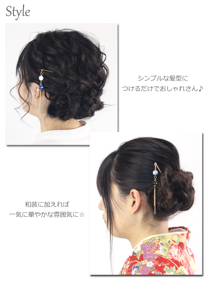 商品説明 | 和風ビーズとロングゴールドチェーンが和装に華やかさをプラスしてくれます♪ かんざし本体は細身で上品な印象に☆ 細やかな丁寧な作りの高品質な日本製です。 チャームは取り外し可能です。チャームのみの販売もあります。 |