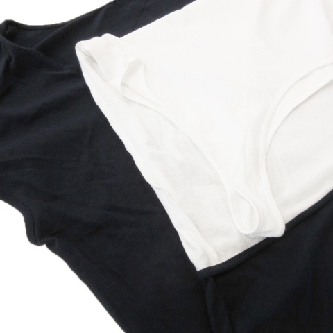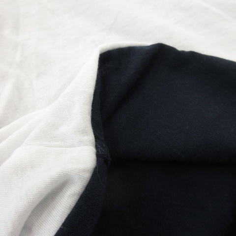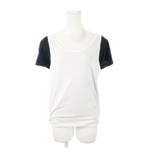 デミリーニューヨーク DEMYLEE New York カットソー フェイクレイヤード ラウンドネック 半袖 S 白 ホワイト 紺 ネイビー