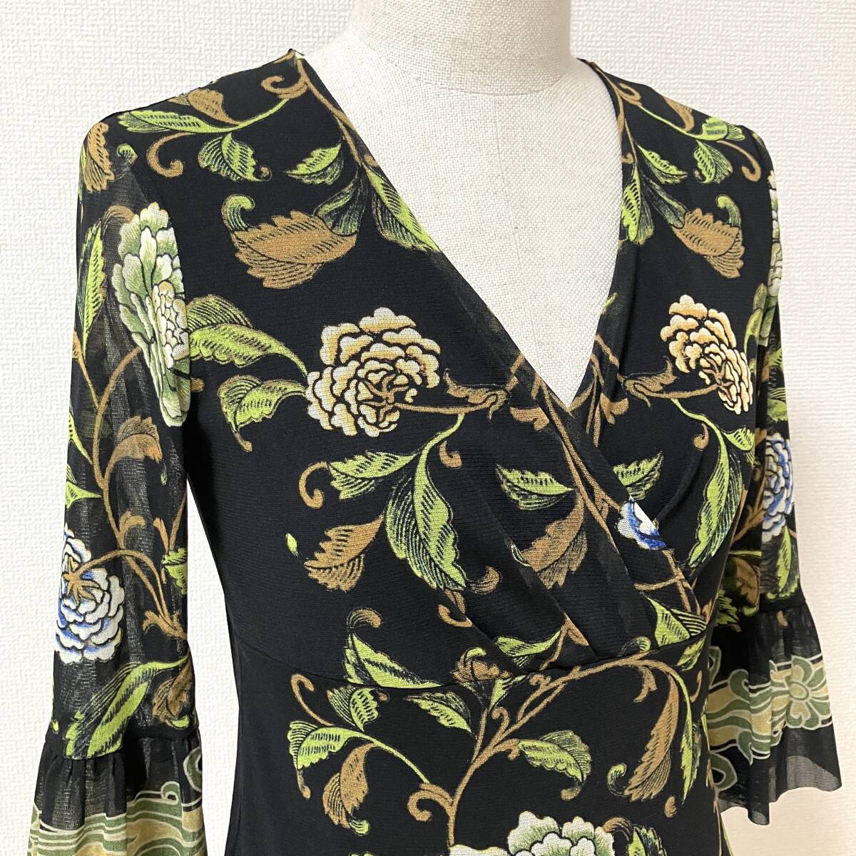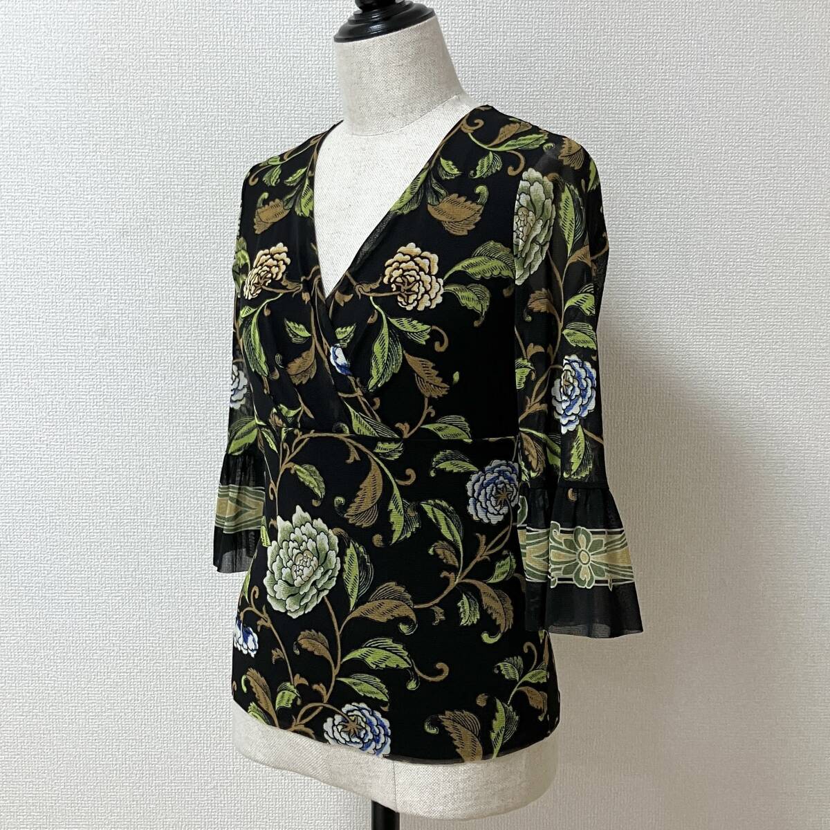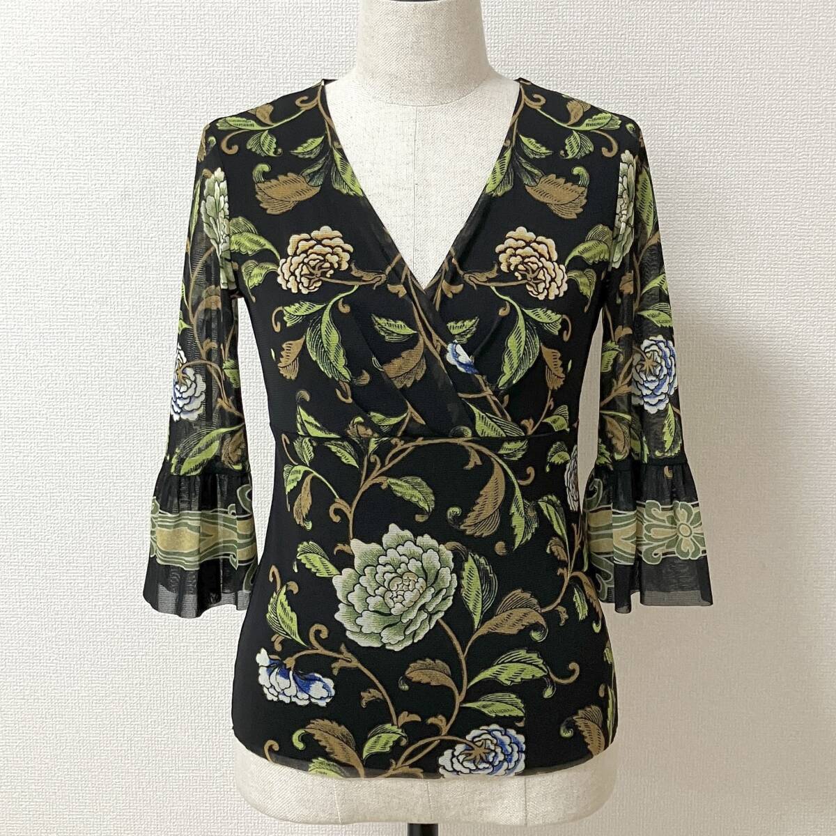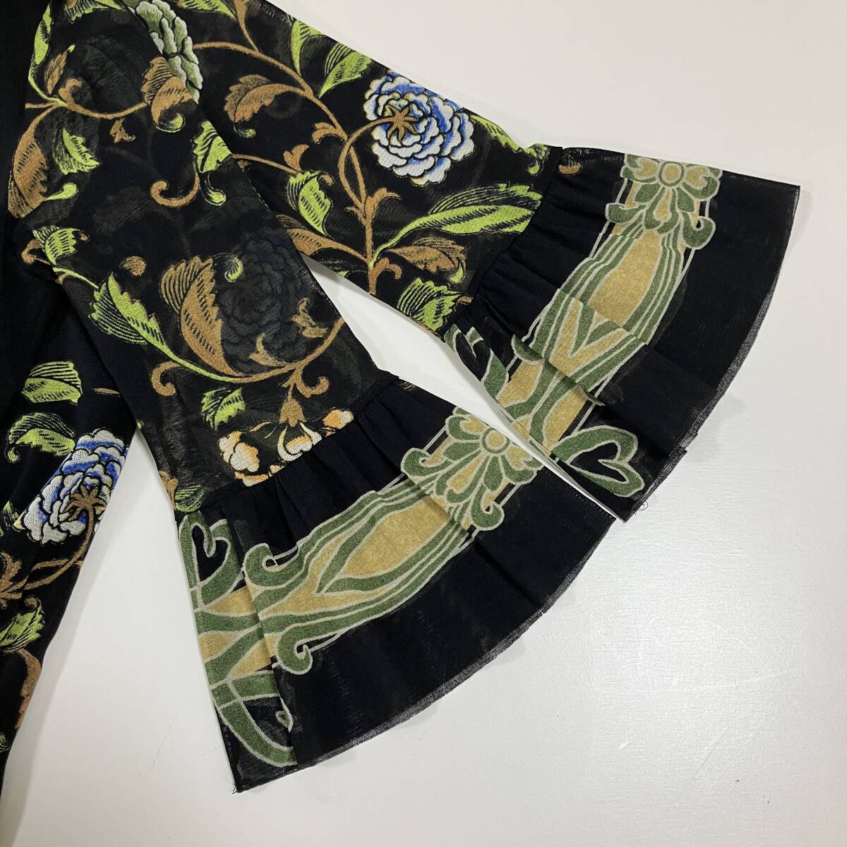 VIVIENNE TAM Chinese Flower mesh パワーネット ベルスリーブ 花柄 カットソー 黒系 0サイズ ヴィヴィアンタム ブラウス archive 5060666