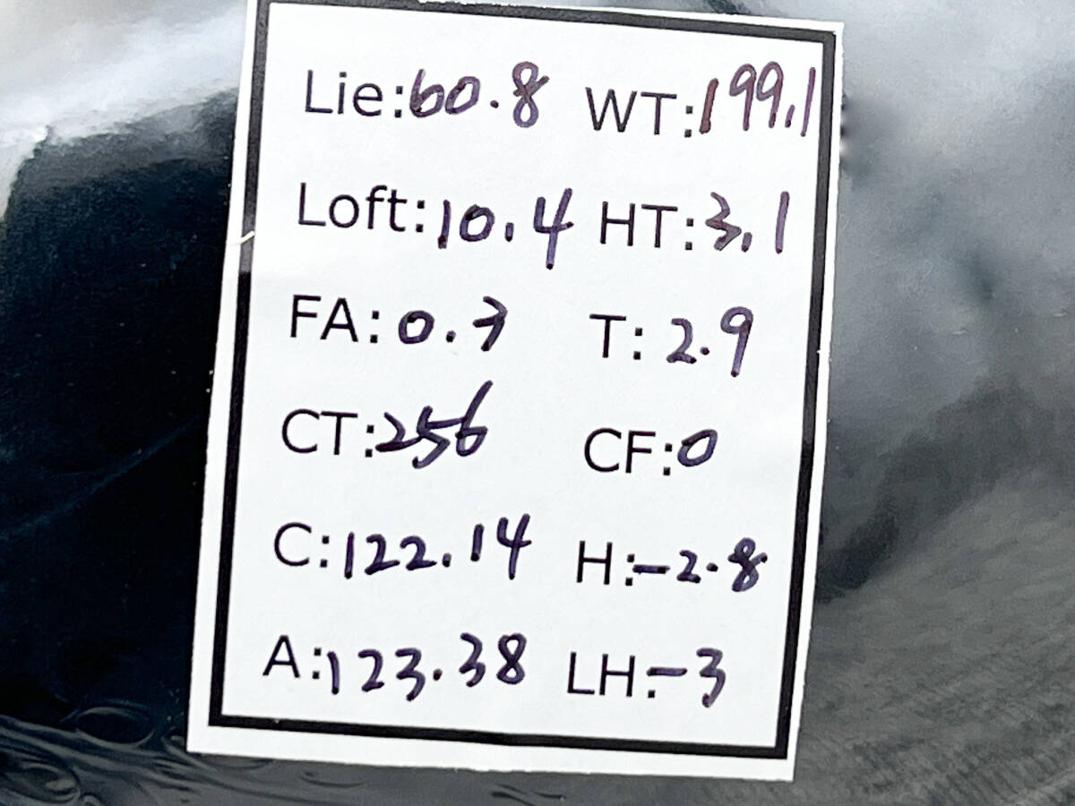 CT値 256 ロフト10.5°表記(リアルロフト 10.4°) ライ角 60.8° F.A(フェースアングル)0.3°OPEN (ほんの少し右向き、ほぼスクエア)