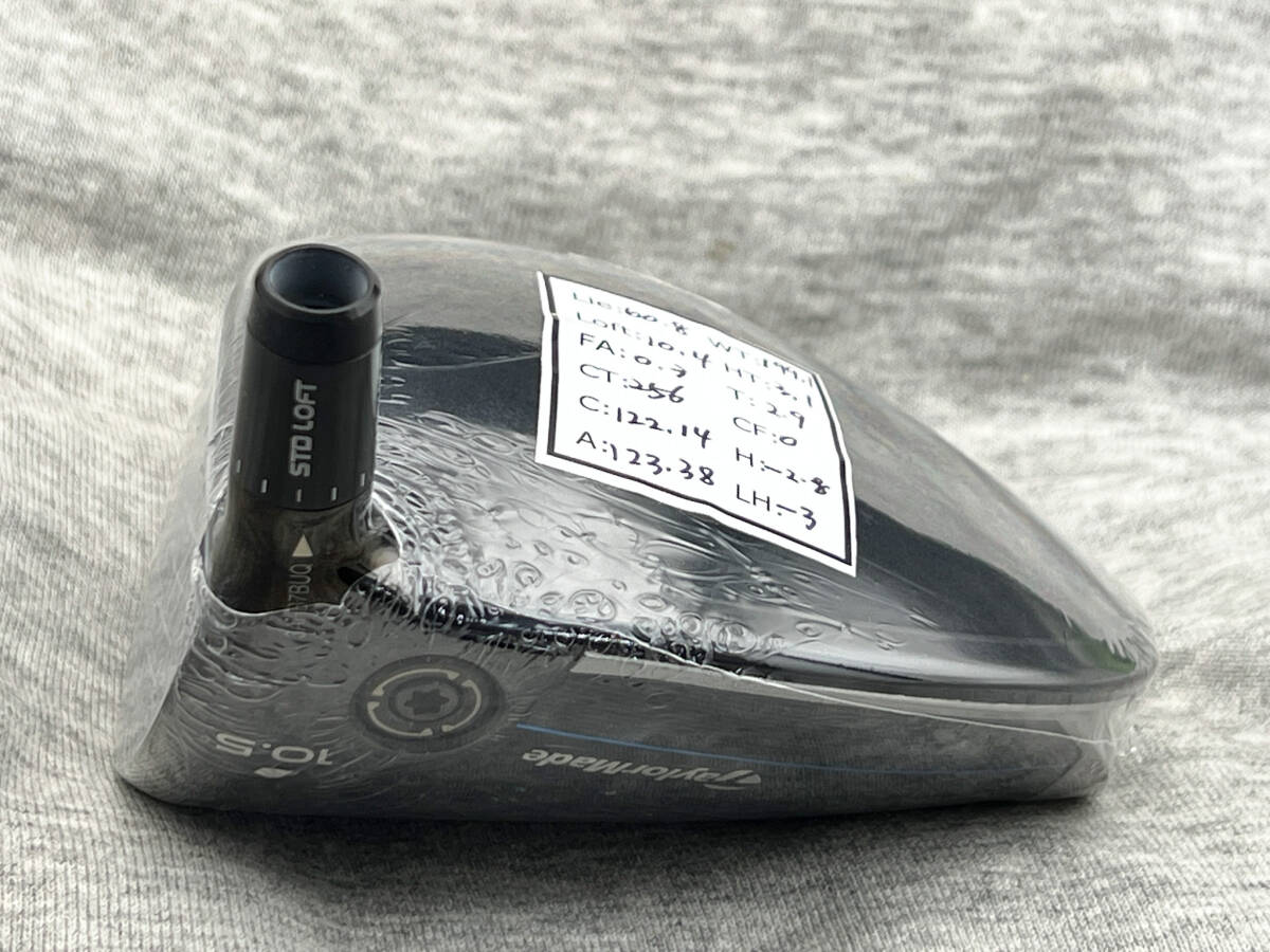 シュリンク(ヘッドを包んでいる透明のラップ)に包まれていて、テーラーメイド社のスペックシートが貼り付けられている新品未使用品です。