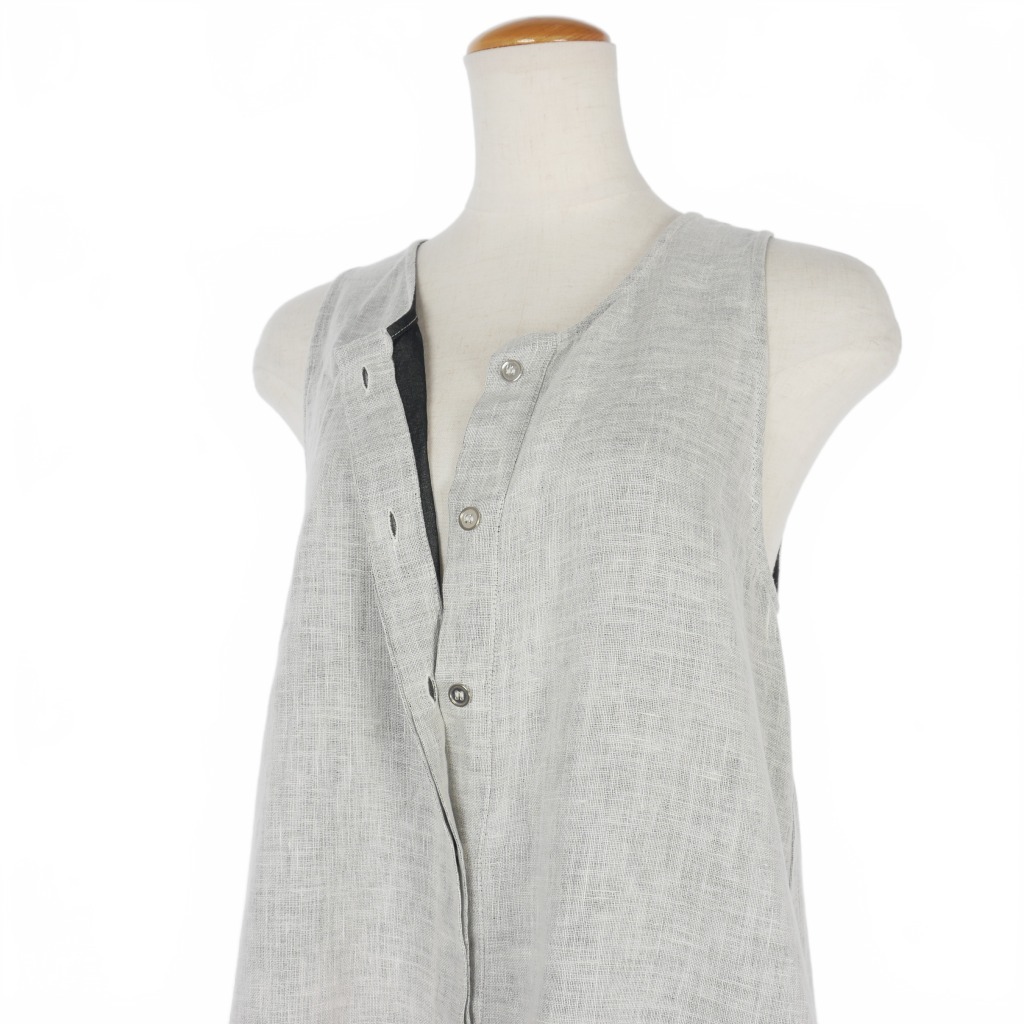 エムエムシックス メゾンマルジェラ MM6 Maison Margiela リネン チュニック ノースリーブ 比翼 40 グレー S32CT0658 S43504 国内正規 レディース