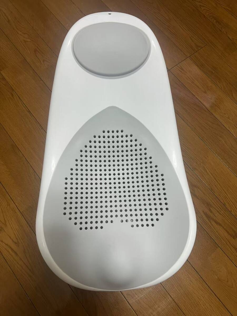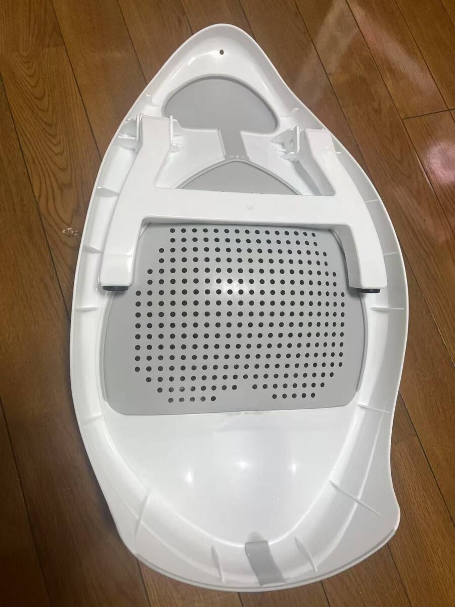 通気性の良い穴あきデザインのベビーバスチェア、滑り止め機能付き。 - 色: ホワイトとグレー - デザイン: 穴あきデザインで通気性が良い - 用途: ベビーバスチェア - 特徴: 滑り止め機能付きの座面