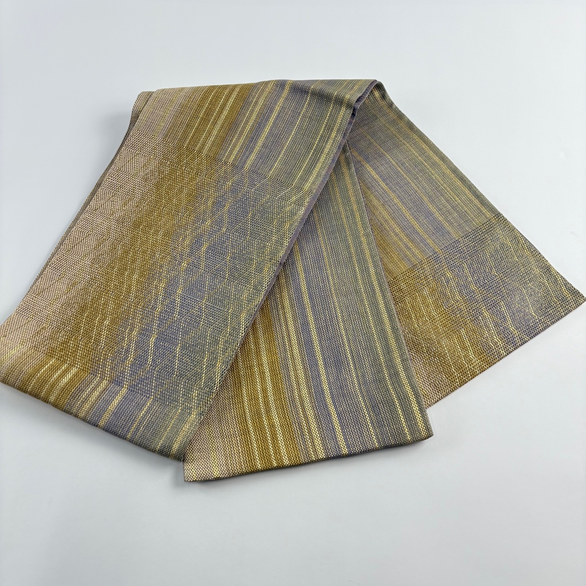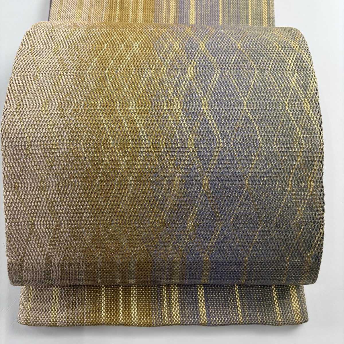 | 袋帯 秀品 菱 縞 金糸 金色 お太鼓柄 正絹 【中古】 |