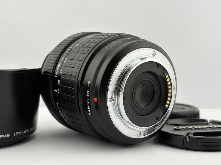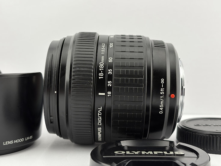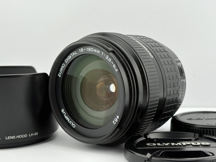 オリンパス OLYMPUS ZUIKO DIGITAL 18-180mm F3.5-6.3 フォーサーズマウント★レンズフード OLYMPUS LH-65、前後キャップ付き★