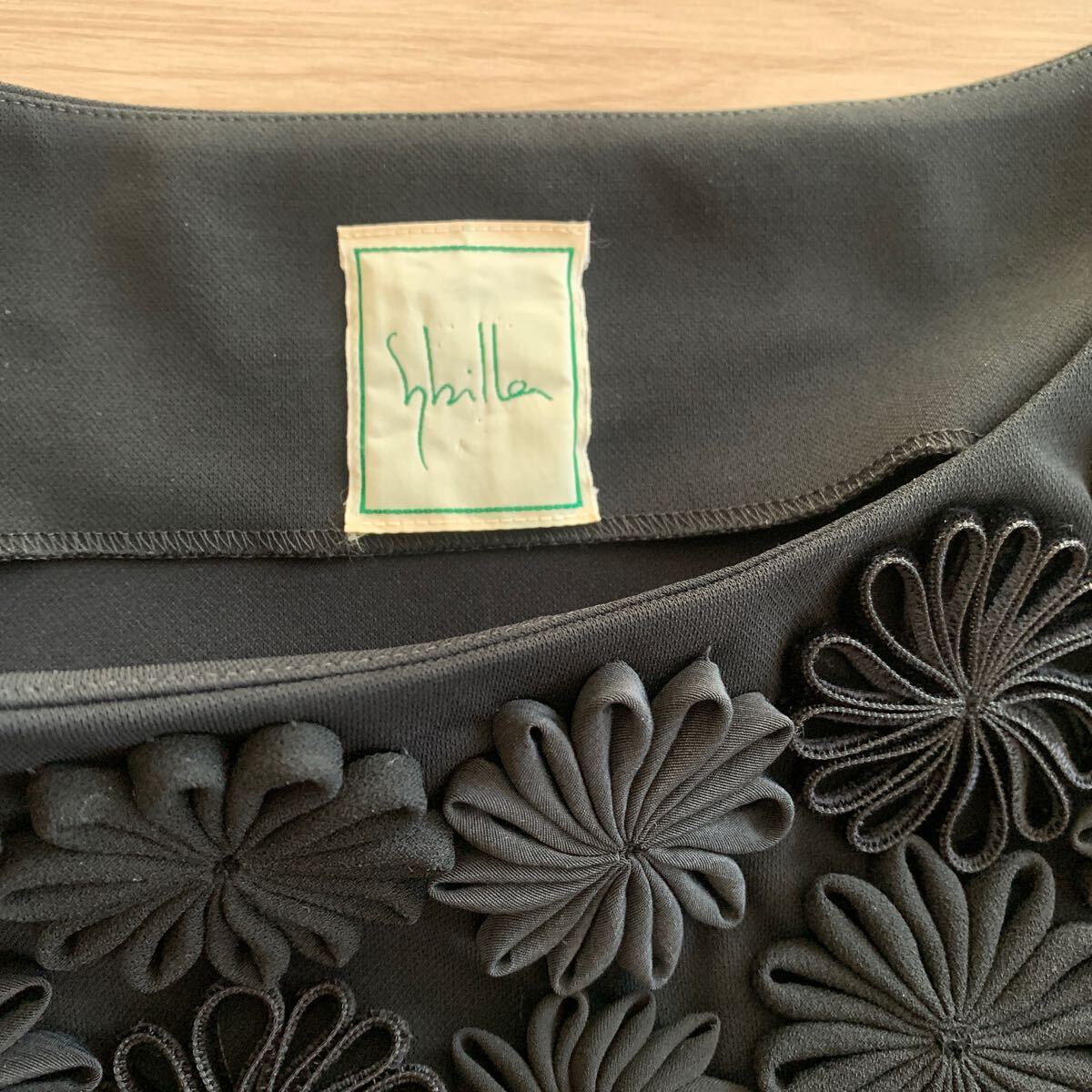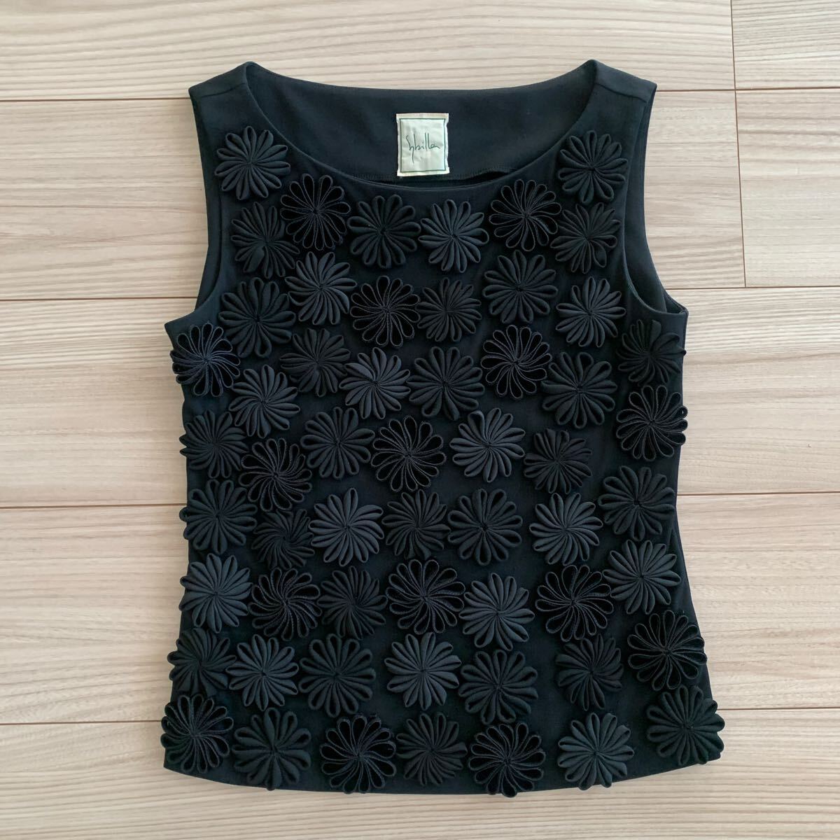 超美品★ sbilla シビラ  タンクトップ ノースリーブ ブラック ストレッチ  M 立体デイジーモチーフ
