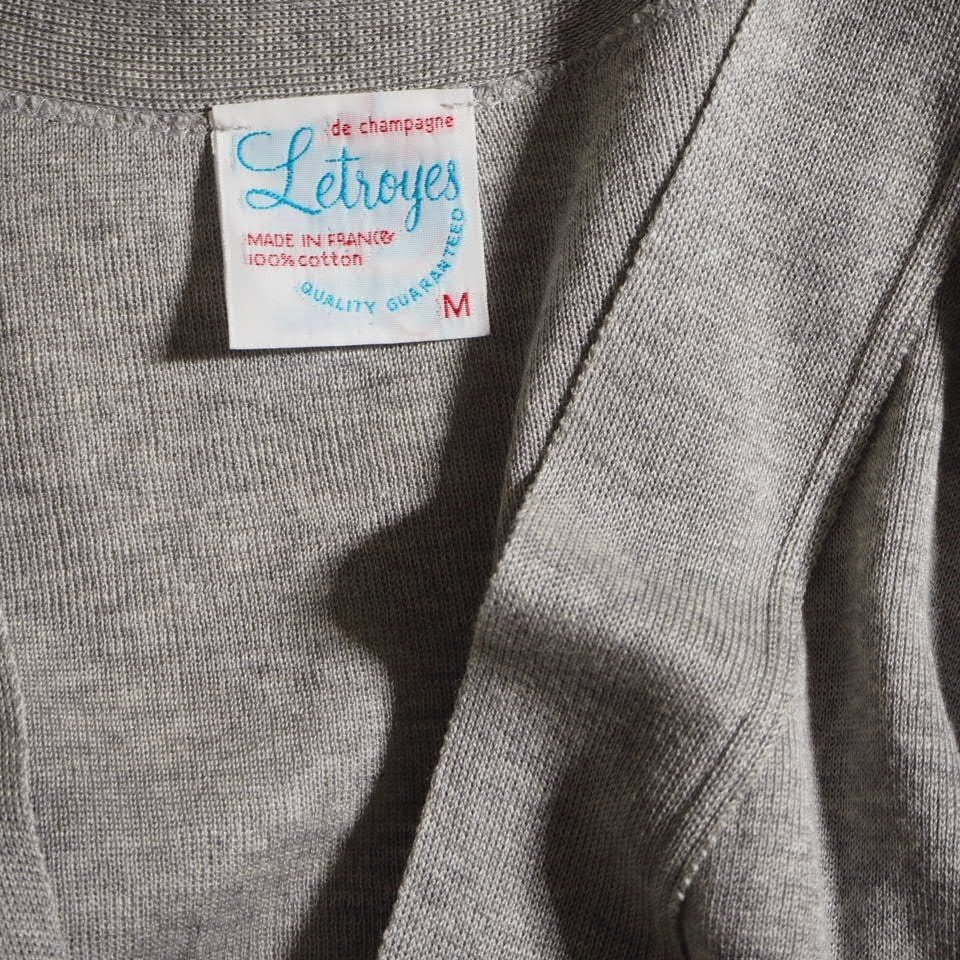 P7200f21 ■Letroyes ルトロワ■ Vネック コットンニットカーディガン メランジグレー M / ハイゲージニット メンズ フランス製 春~秋