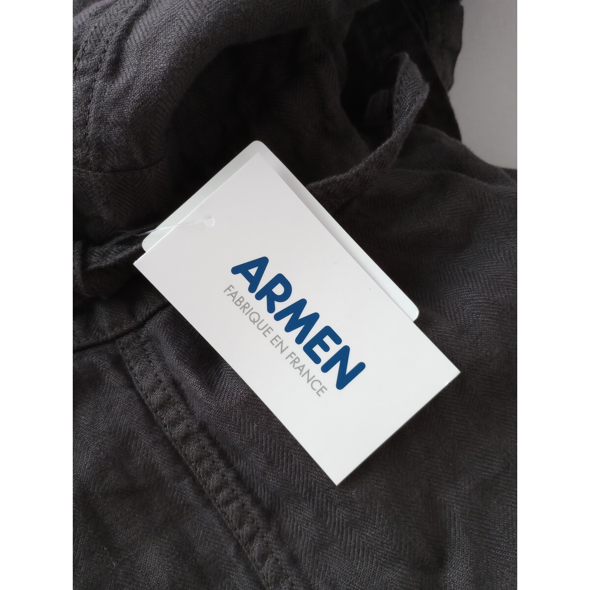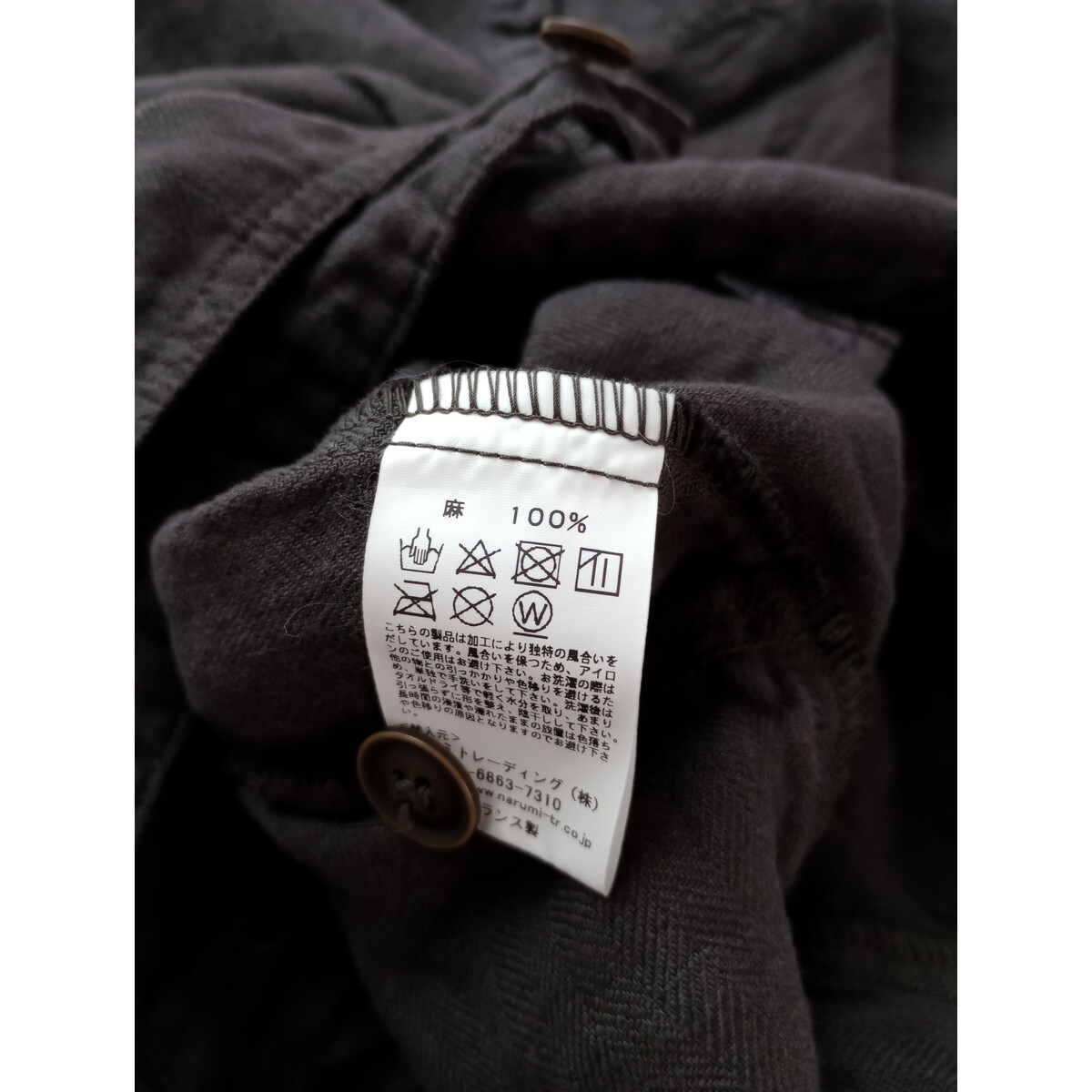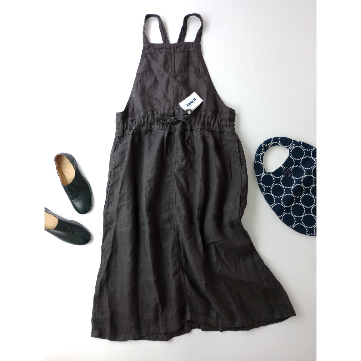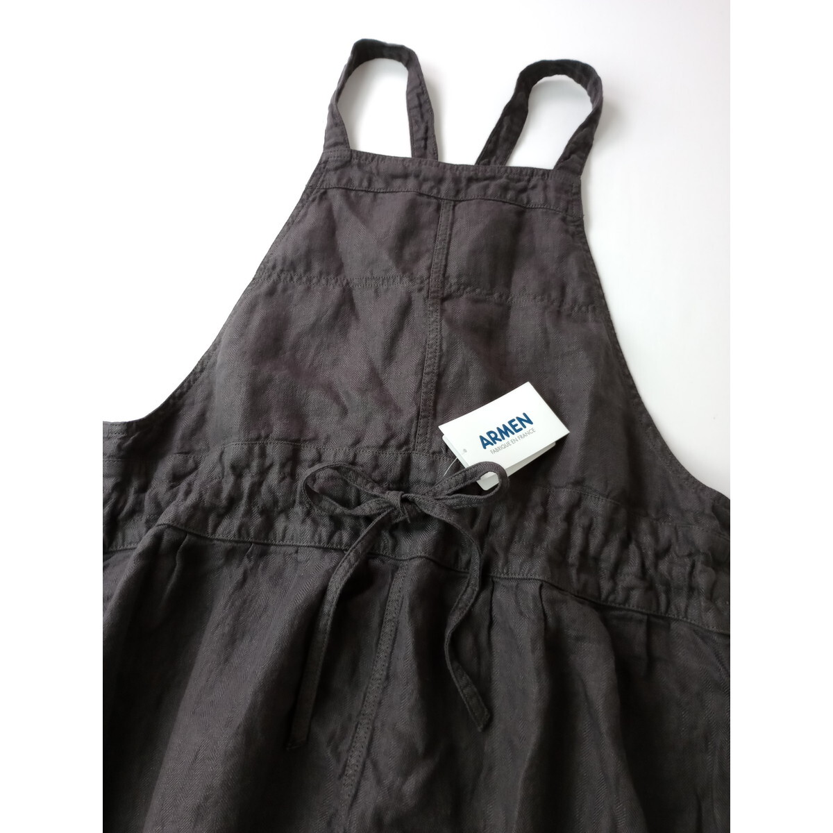 ARMEN アーメンApron One Piece リネン100% ヘリンボーン エプロンワンピース ジャンパー サロペット スカート ロング チャコールグレー 0