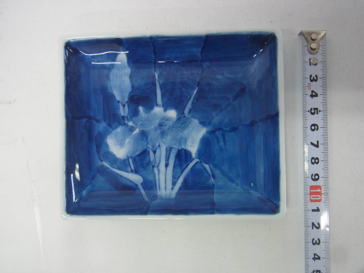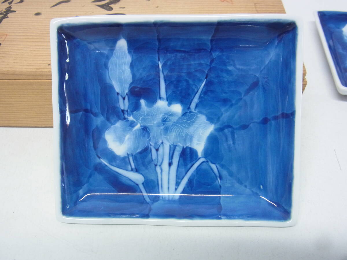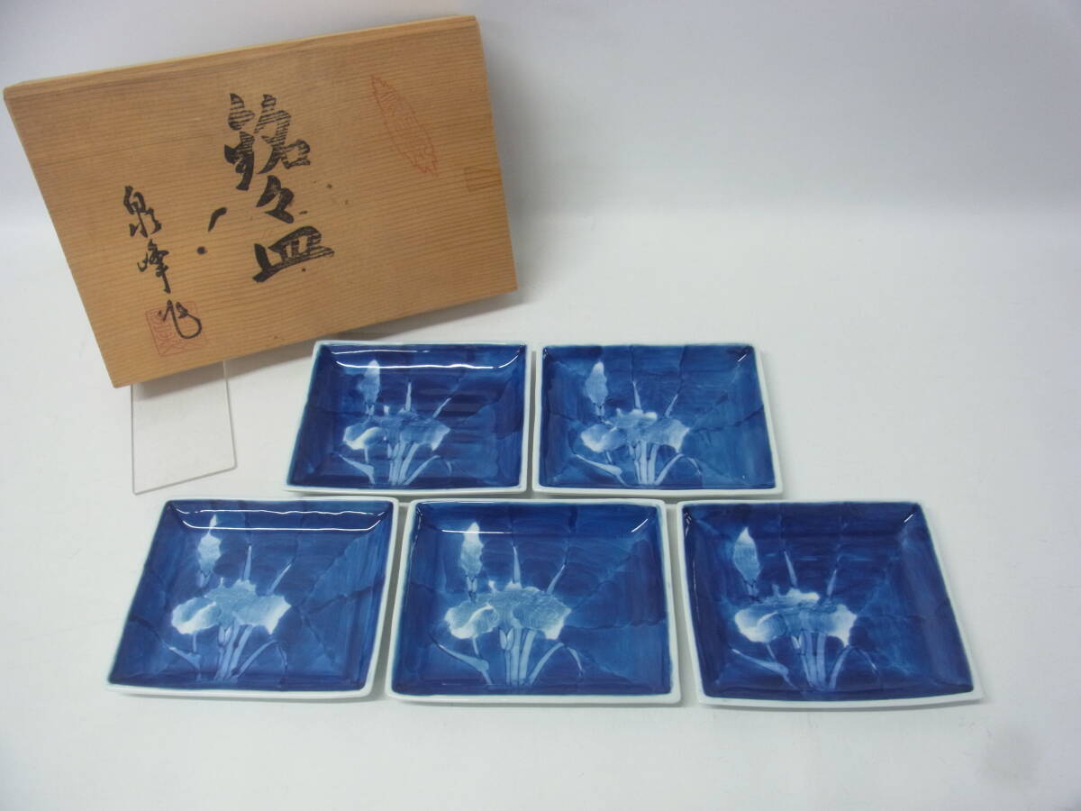▲有田焼 泉峰 銘々皿 5枚 縦:約11cm×横:約13.5cm 角皿 小皿 取皿 花図 花 あやめ かきつばた ▲60 | |||