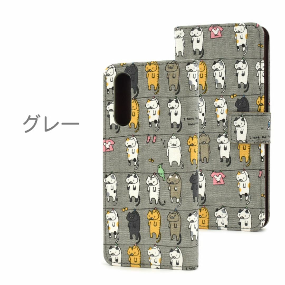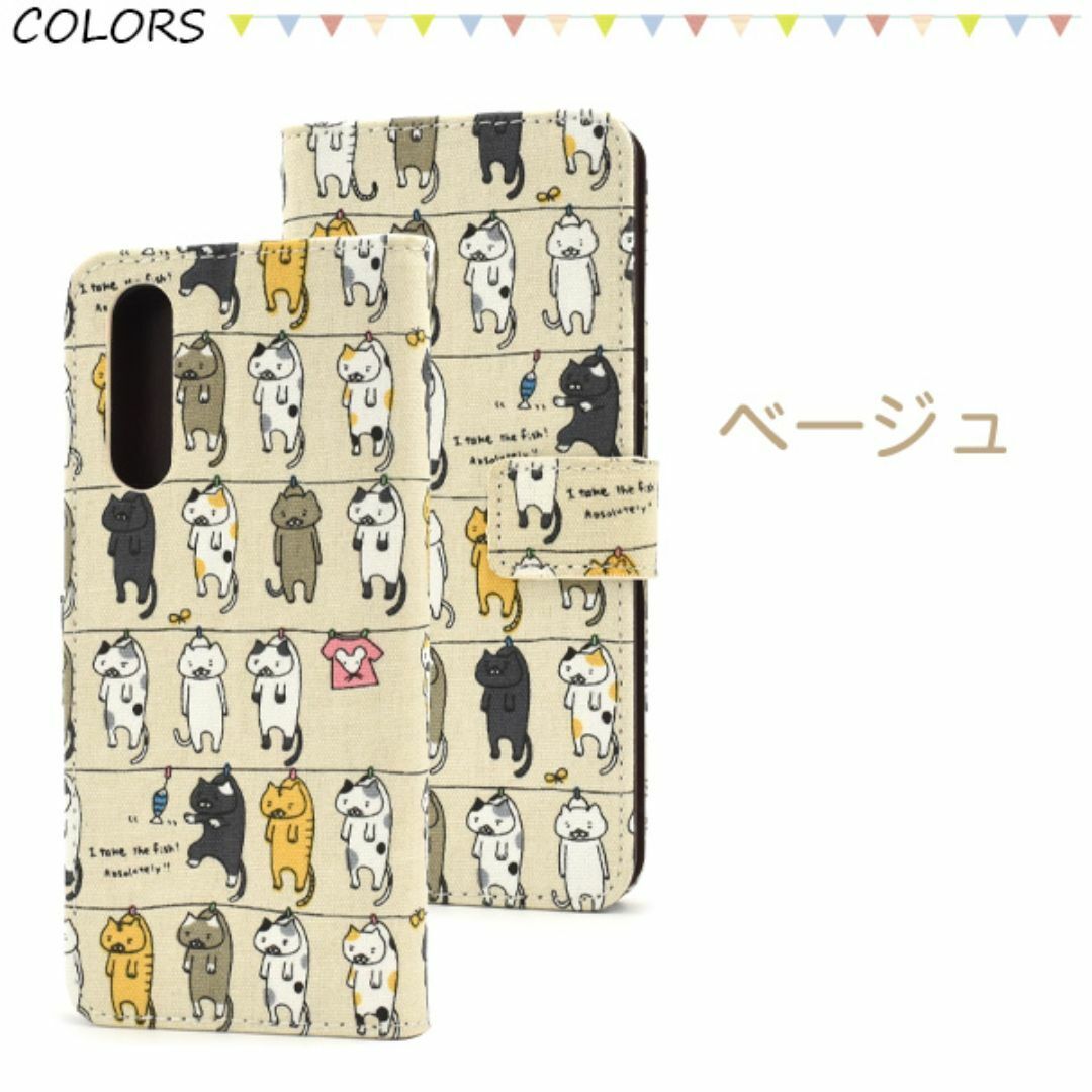 いっぱいの猫達が干されている柄の手帳型ケースです。