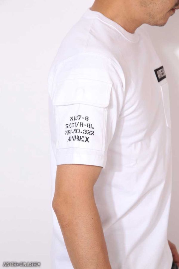 AVIREX アビレックス ファティーグ 半袖 Tシャツ ホワイト【Mサイズ 】6113328 クルーネック ポケット ミリタリー