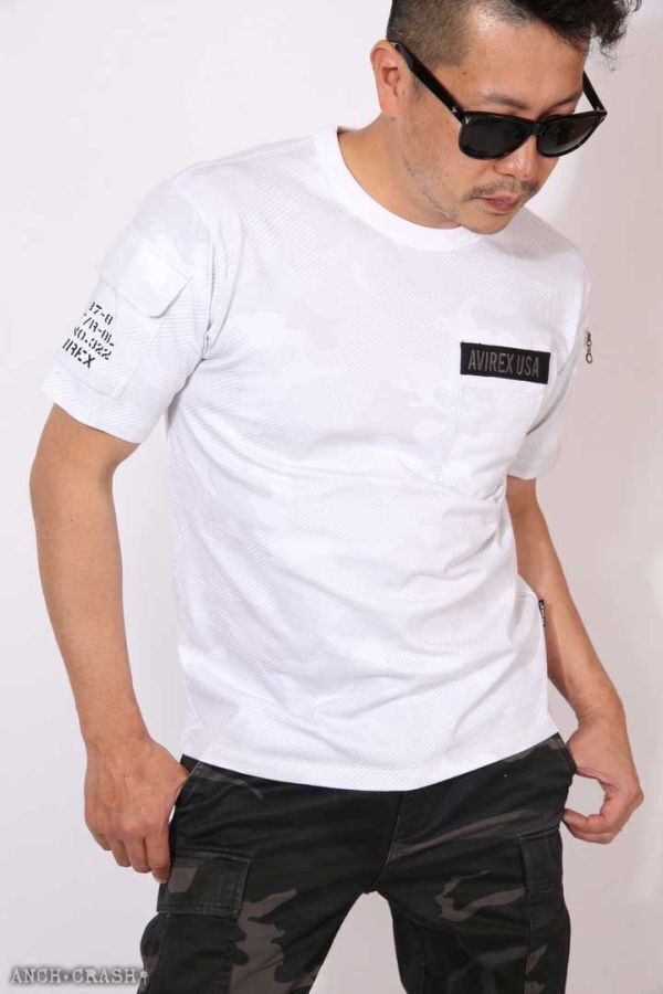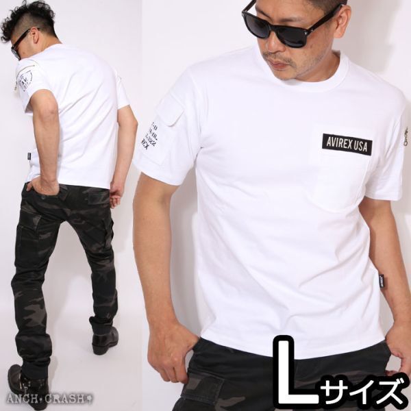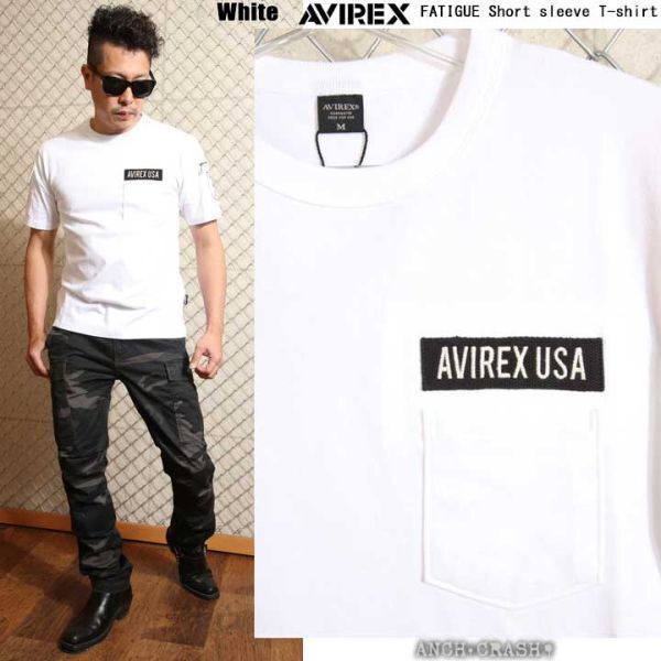 AVIREX アビレックス ファティーグ 半袖 Tシャツ ホワイト【Lサイズ 】6113328 クルーネック ポケット ミリタリー