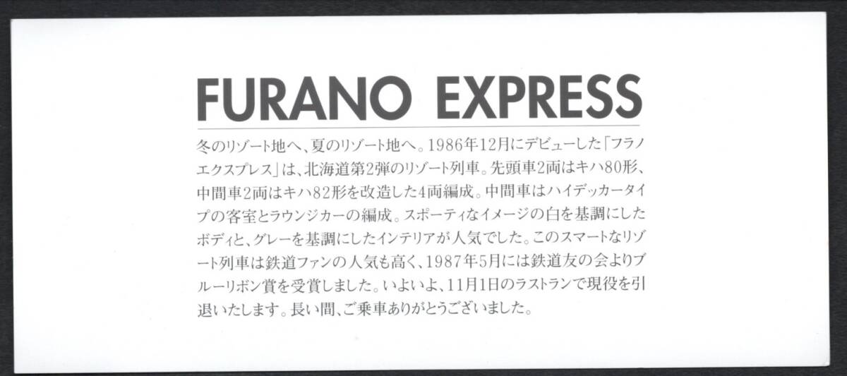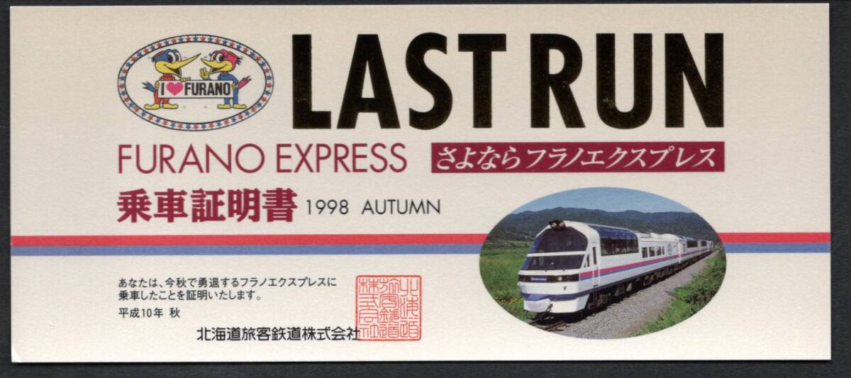 平成10年 さよならフラノエクスプレス乗車証明書(JR北海道)