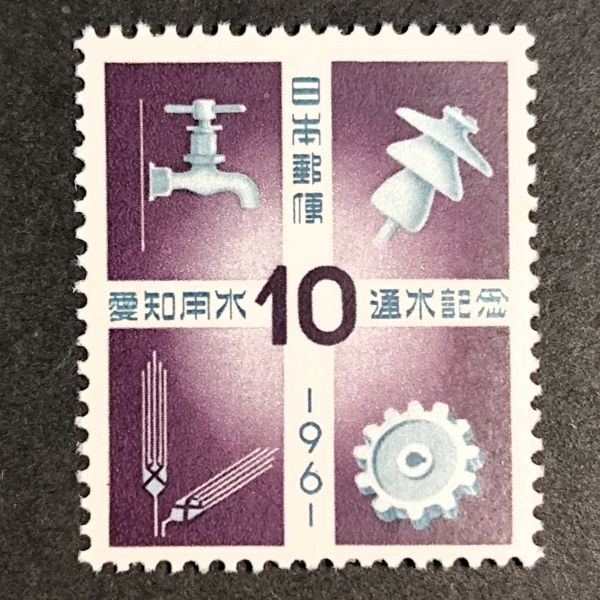 [25072423]【愛知用水通水】単片「用水の恩恵・蛇口・がいし・麦・歯車」10円 1961年発行 美品