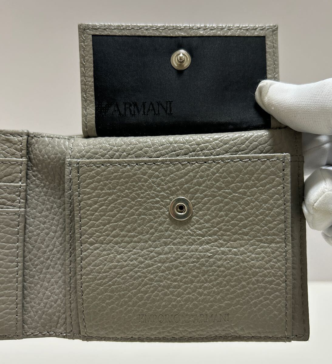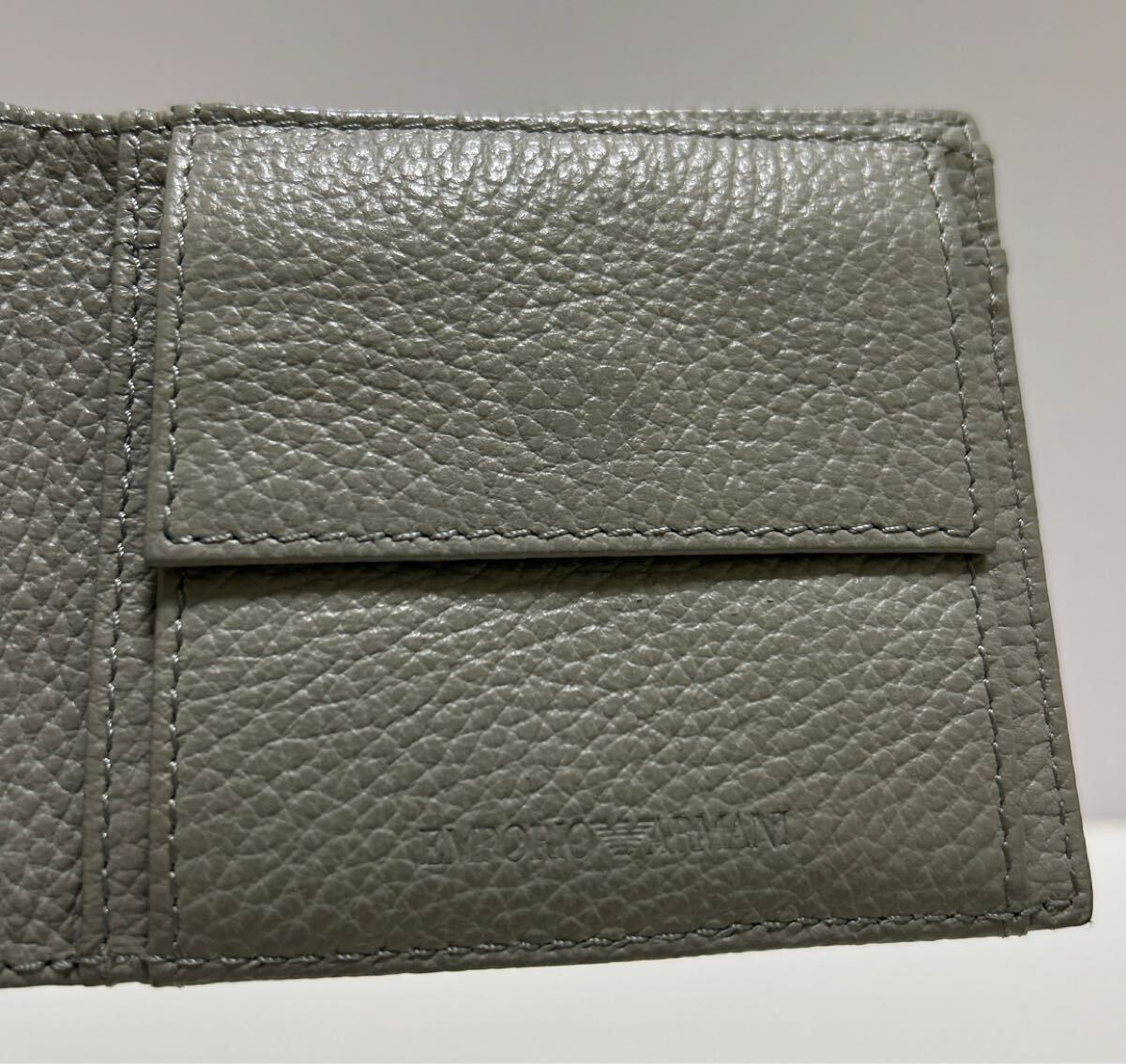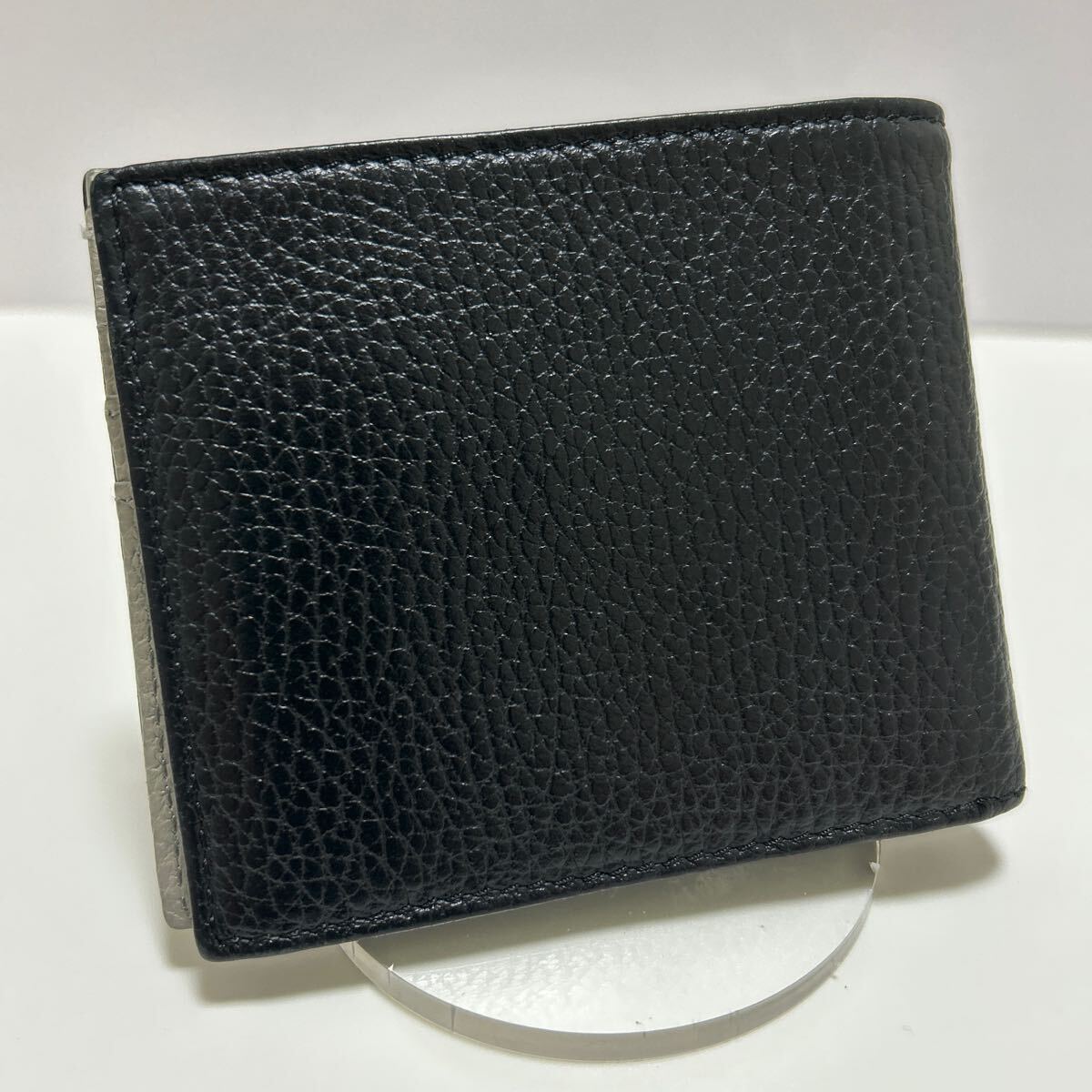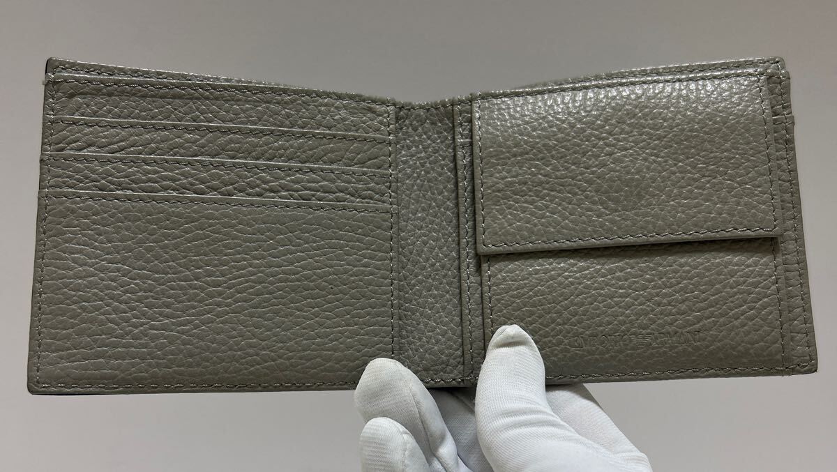 ☆美品☆ ◆エンポリオアルマーニ コンパクト 折り財布 ブラック×グレー◆ 本革 小銭入れ有 メンズ 正規品保証 【送料無料】0724