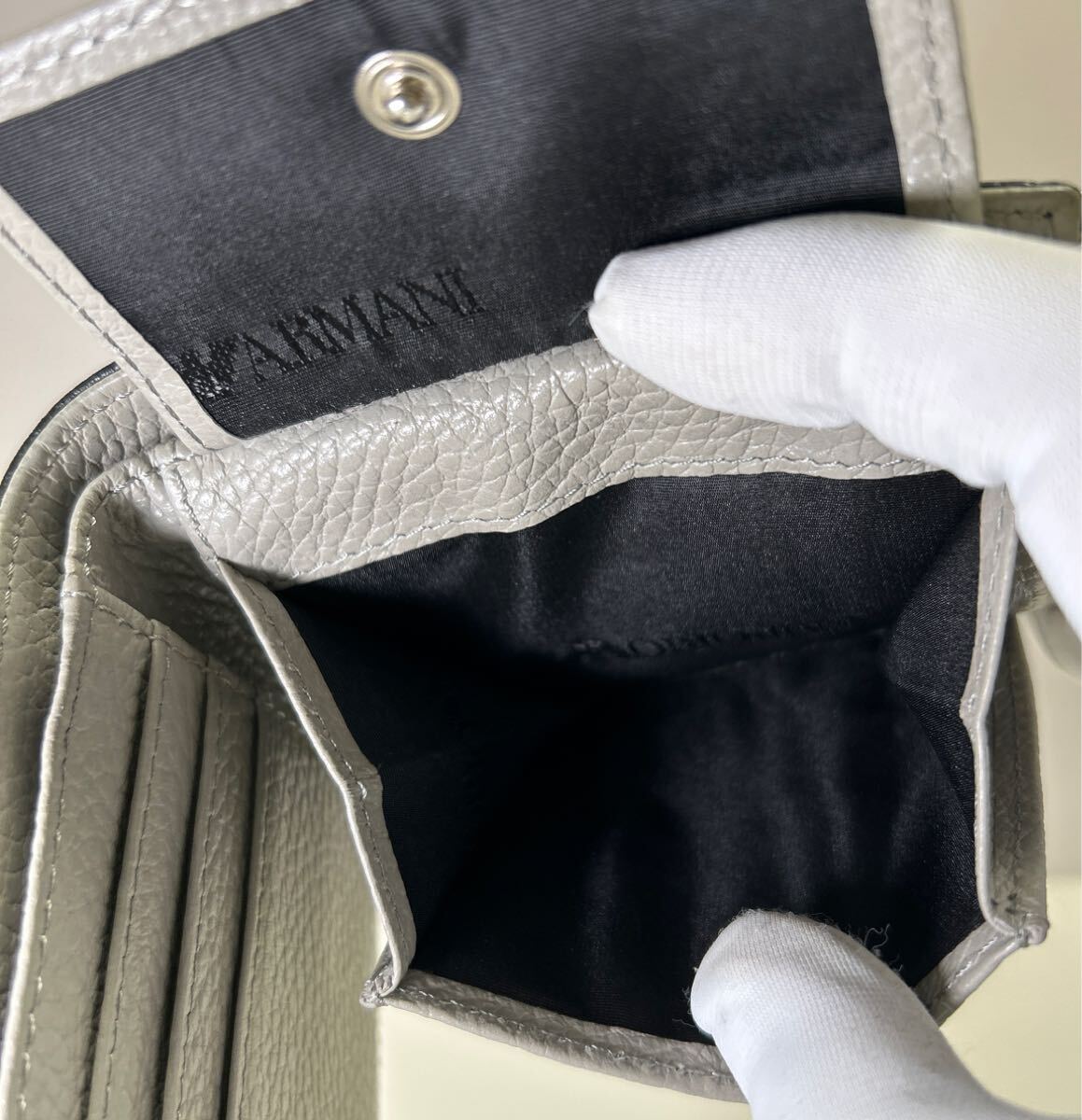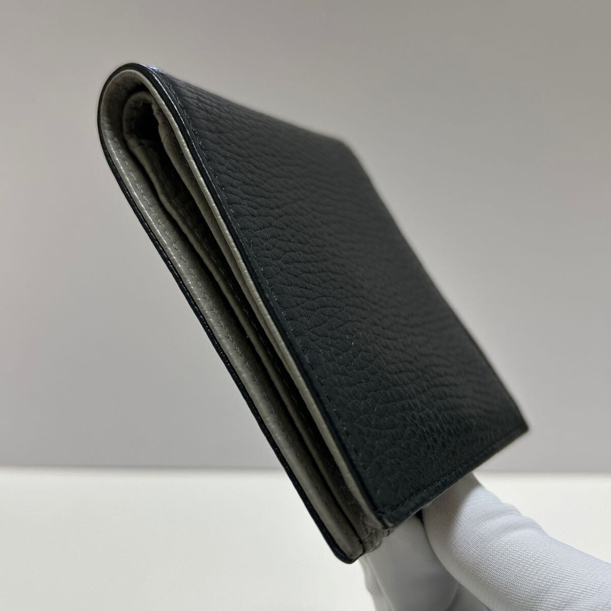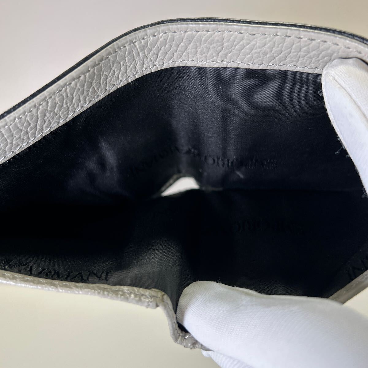 ☆美品☆ ◆エンポリオアルマーニ コンパクト 折り財布 ブラック×グレー◆ 本革 小銭入れ有 メンズ 正規品保証 【送料無料】0724