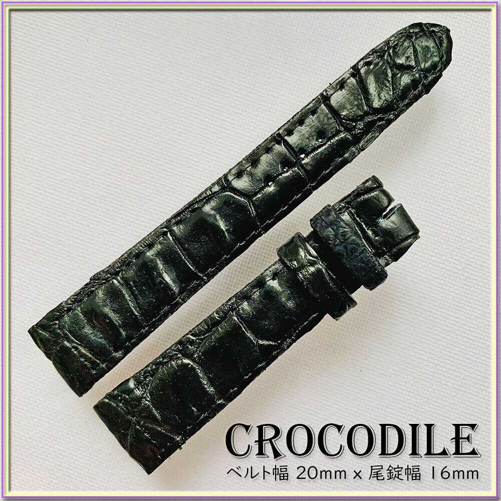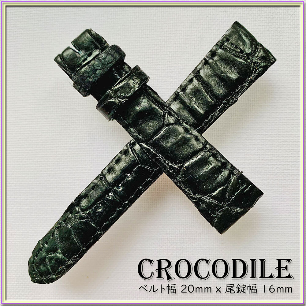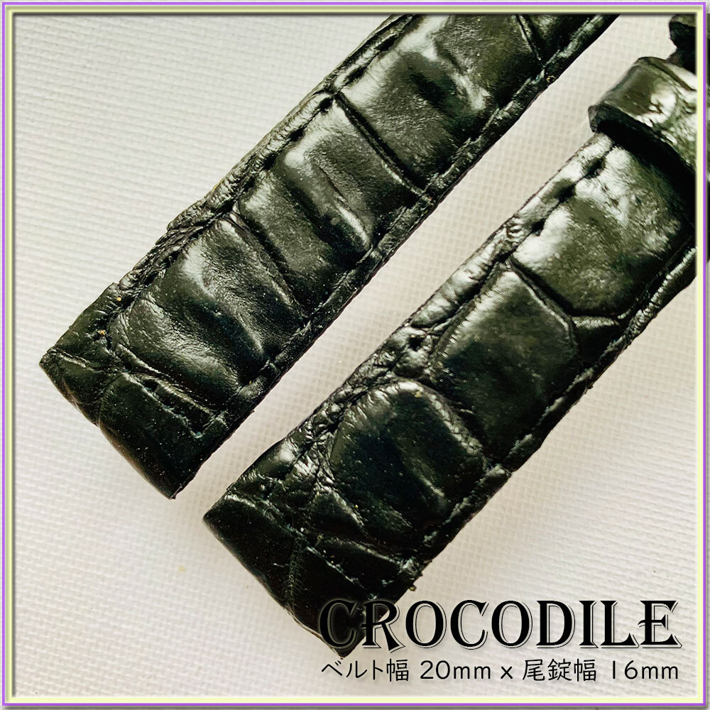 SALE!20mm 本革 クロコダイル ワニ革 時計ベルト 1点物 別注 イタリアンブラック ITALIAN BLACK 竹符模様 HANDMADE 高品質 クロコ 限定