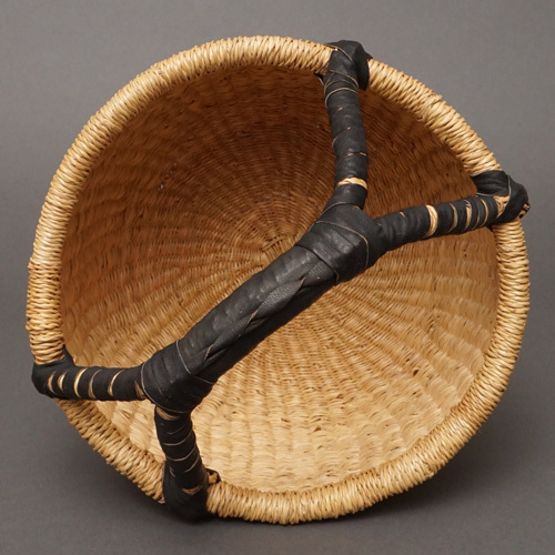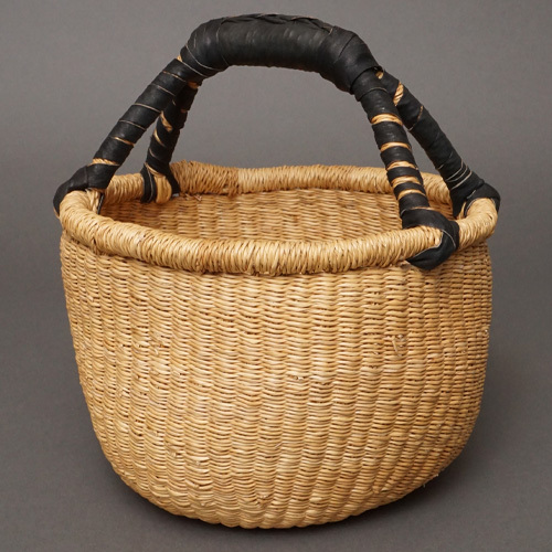 ハンドルにブラックレザーを使用した半球型バスケットです。