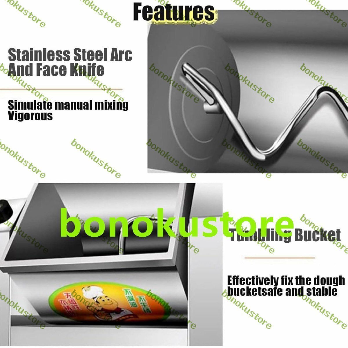商品説明 商品の説明 名前: 商業生地ミキサー 材質: ステンレス鋼 小麦粉を一度に加える:2~5kg パスタ容量:18リットル 生産効率:50kg/時間 性能: 1.5kW 所要時間:最大30分 製品寸法: 48 x 30 x 41 cm。 麺バケツの寸法: 30 x 23 x 27 cm 梱包寸法: 50 x 32 x 42 cm 総重