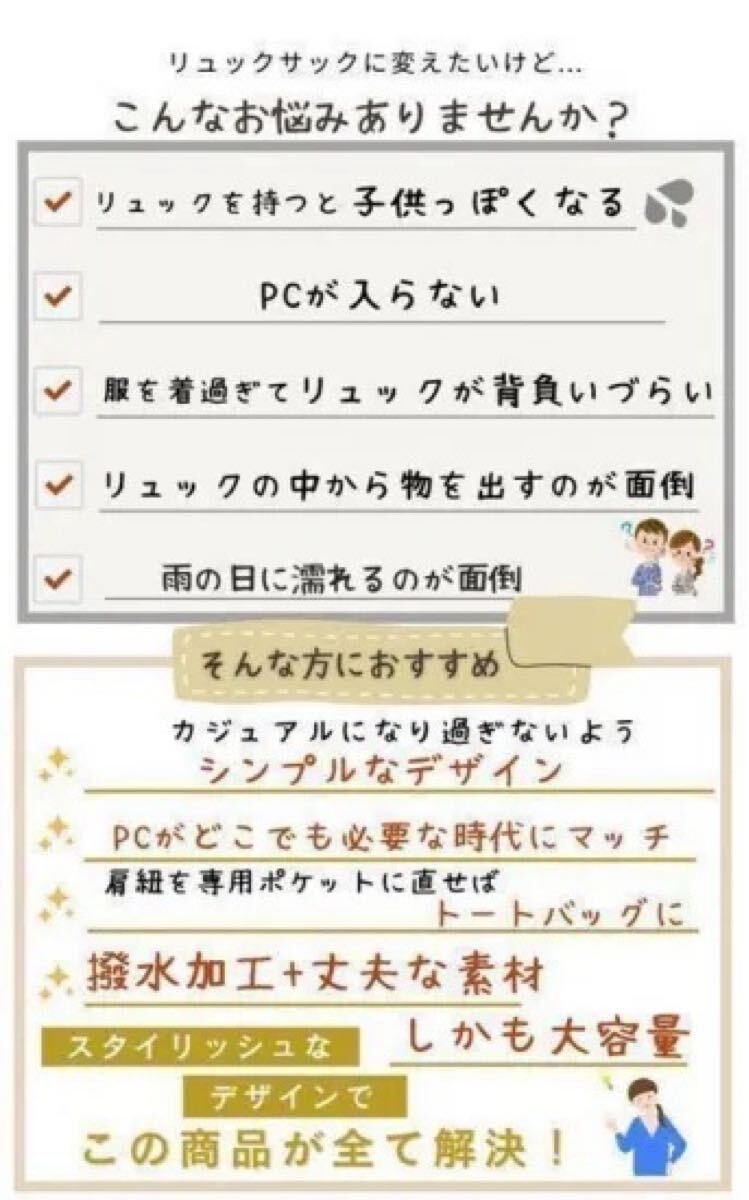 2WAY リュック トートバッグ リュックサック 大容量 A4 通勤 通学 ブラック レディース メンズ 撥水