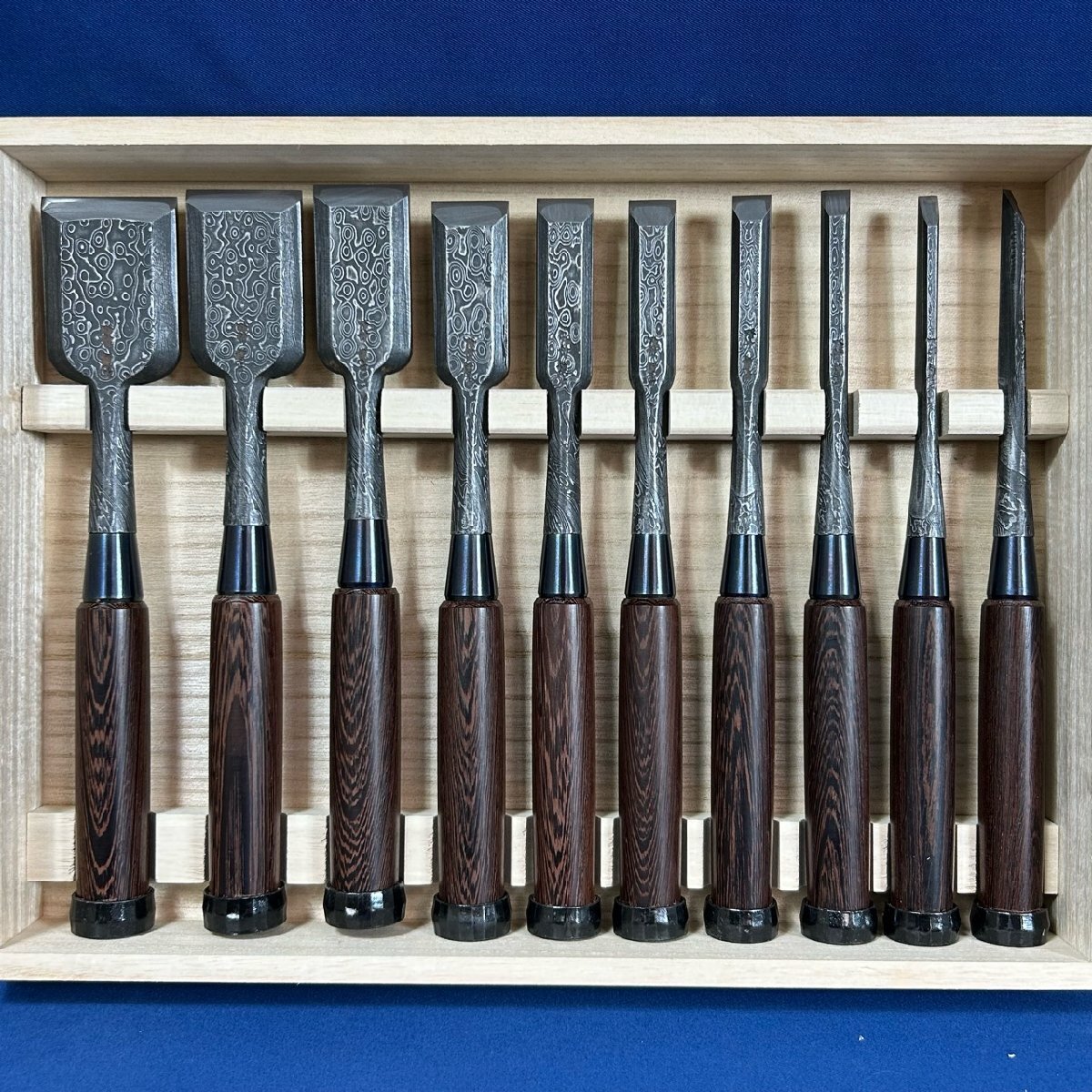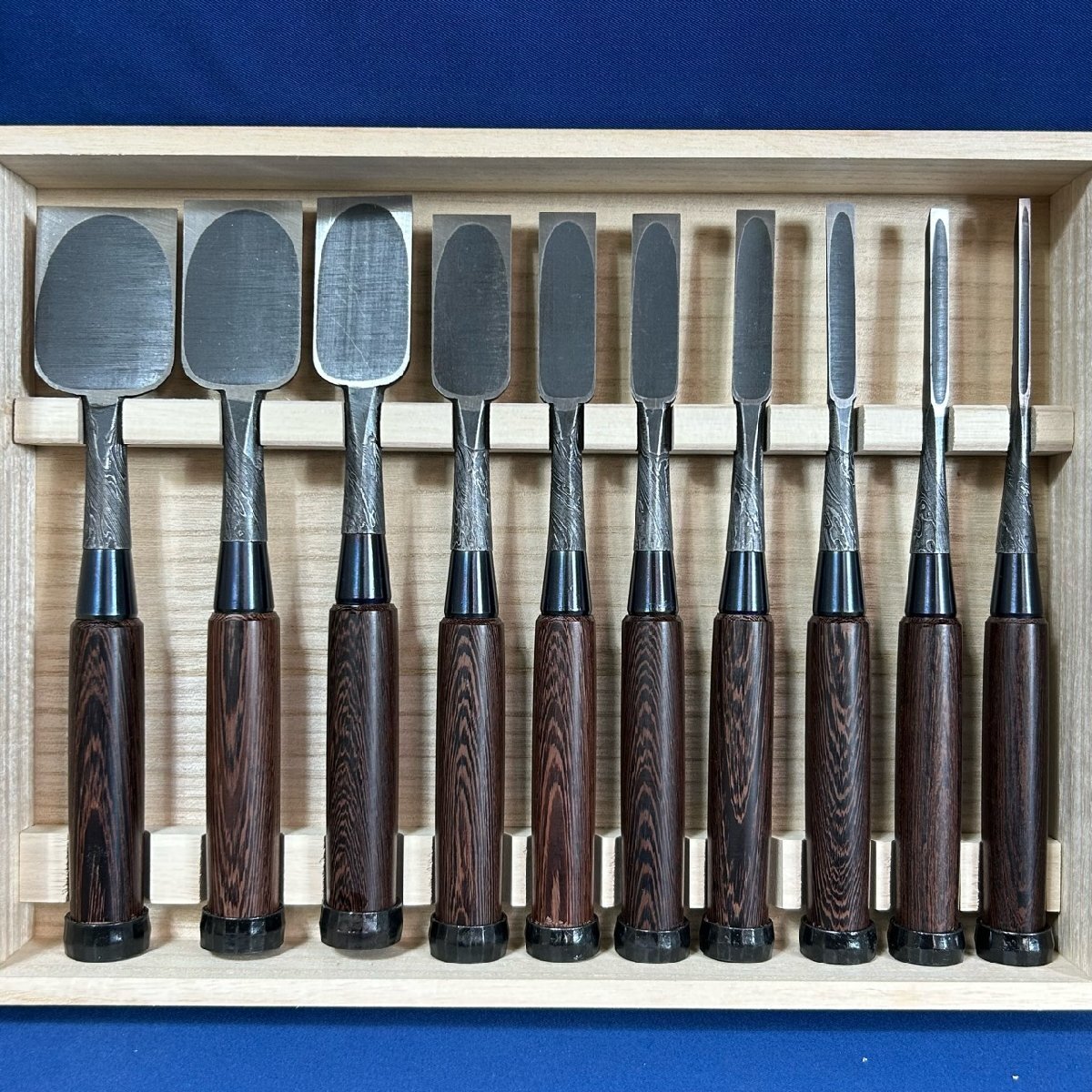 ◆舟弘氏の『黒木目仕上げの追入10本組鑿』が2年ぶりに入荷いたしました。