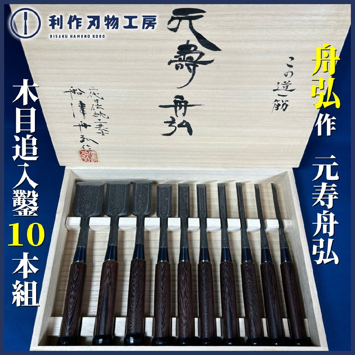 ・元寿舟弘 木目仕上 追入鑿 10本組