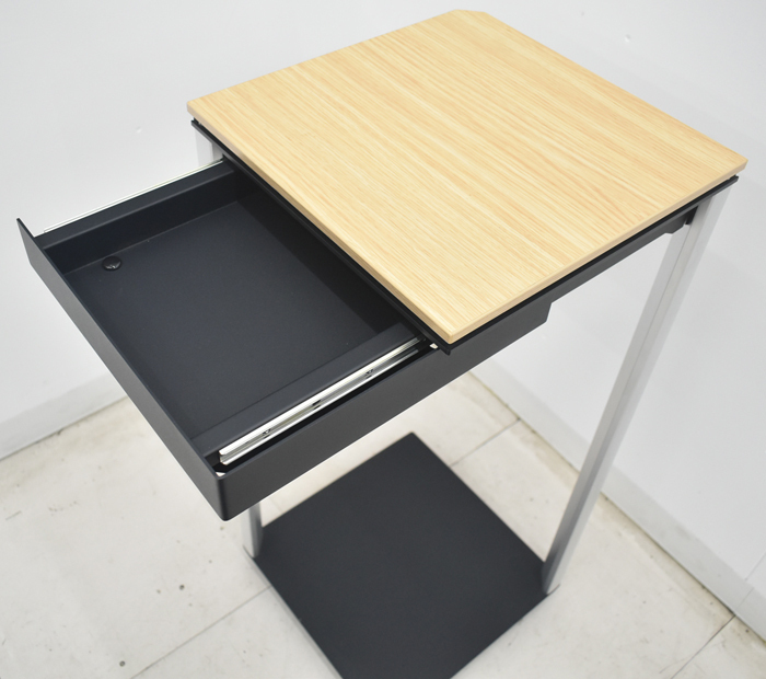 | ■備考 コクヨ SAシリーズ 電話台 引き出し付 幅350 コクヨのSAシリーズ・電話台です。 コミュニケーション空間を演出する上質なアクセサリーシリーズです。 端正なフォルム、繊細なディテール、上品な素材感で先進性の高いデザインを実現し、部屋隅配置に適した形状で隅に配置すると脚が目立たなくなり、スッキリとした印象になります。天板と支柱の隙間部分に配線することができます。 ●引出内寸法/幅22×奥行31.5×高さ3.5cm ●引出開口内寸法/幅22×奥行17cm ●耐荷重/天板:約10kg、引き出し:約1.5kg ●機能/小物引き出し、引き出しの方向の付け替え、天板と支柱の隙間部に配線可能、アジャスター(調整8mm) 建物内への搬入作業や梱包残材の回収をご希望される場合は、アートセッティングデリバリー(家財おまかせ便)でのお届けで対応可能です。 アートセッティングデリバリー(家財おまかせ便)でのお届けの場合の送料はお見積りとなります。 ご注文前にお見積りすることも可能ですし、ご注文時やご注文後にその旨ご希望いただければ対応させていただきますのでお申し付けください。 4t車が進入できない場所への配送・日曜祝日着・配達時間帯指定・トラックからの荷下ろし作業・搬入作業・組立作業等をご希望である場合はお見積りにて対応となりますのでお申し付けください(お見積りできない場合がございます)。 クリーニングとメンテナンスをしっかり行ってお届けします。 この商品の程度は中古品として美品といえます。 多少の擦れや傷はあるものの気になる程ではないでしょう。 御使用端末の環境により多少画像の表示色と実物の色に差違が生じる場合がございますのでご了承ください。 | |
