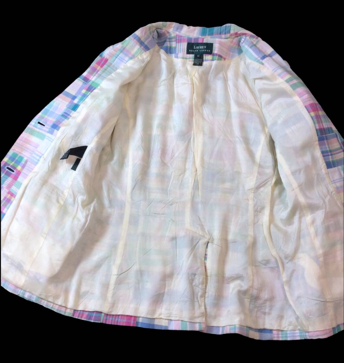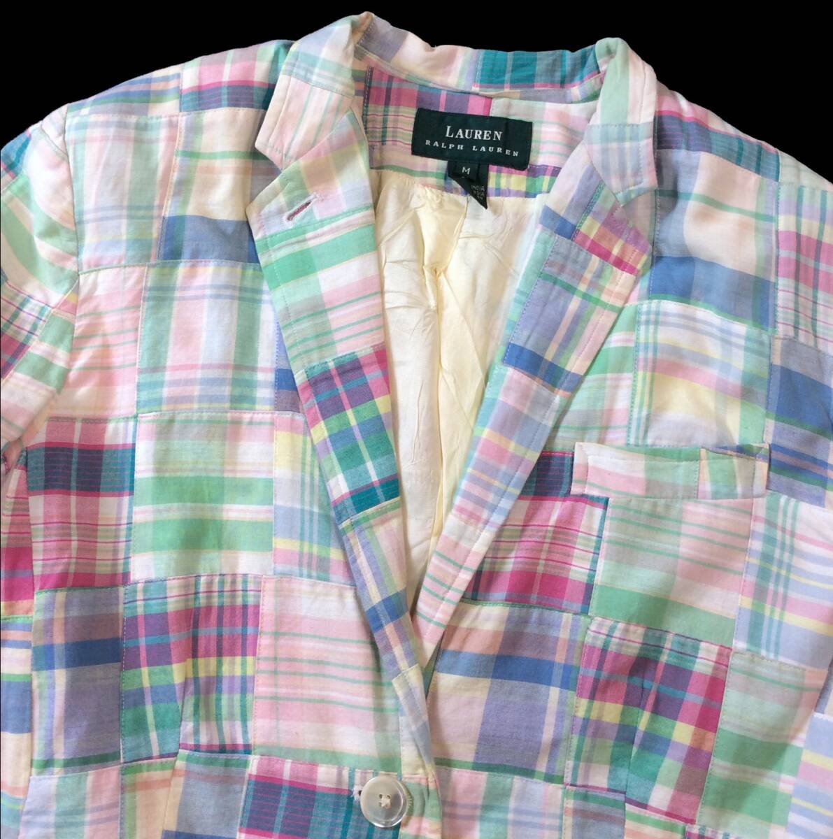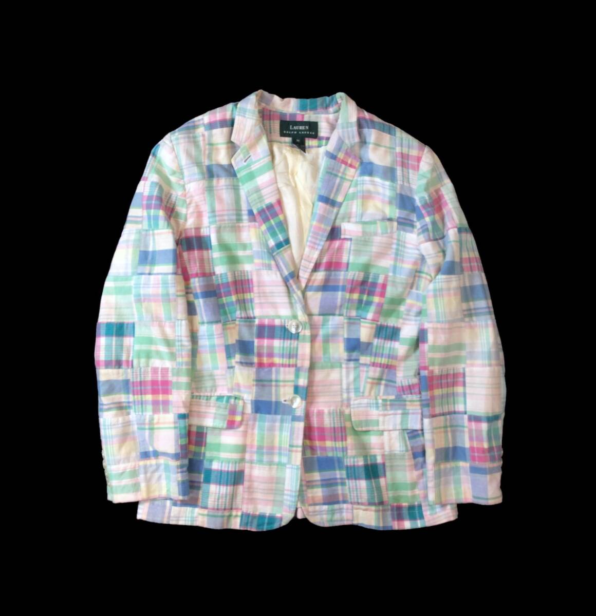 RALPH LAUREN ラルフローレン 90s パッチワーク テーラードジャケット チェック ローレン レディース M メンズにも ヴィンテージ