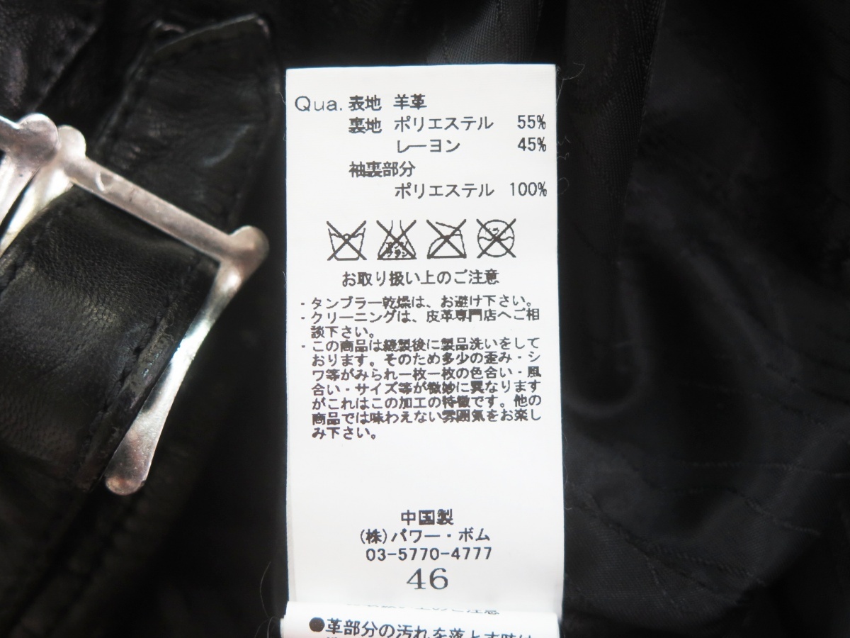 FUGA フーガ FG16-H24 16AW ラムレザー ダブルライダースジャケット 46