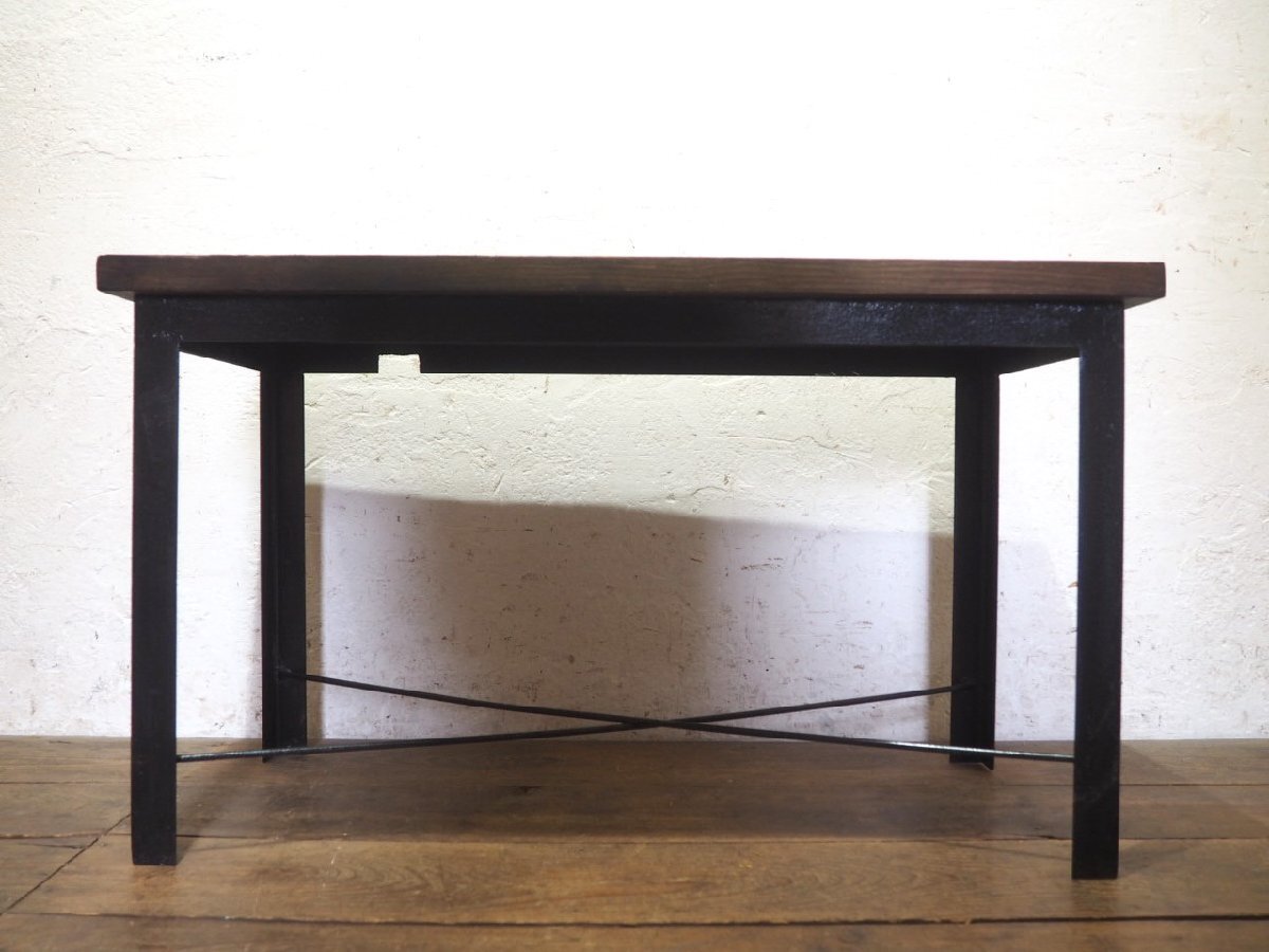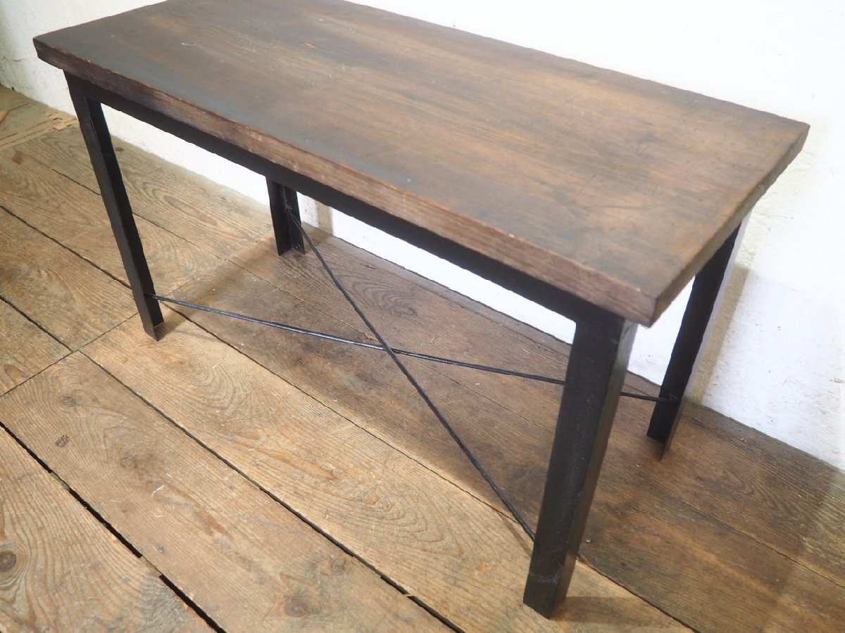 タU0848◆①天板W85cm×D35cm◆ヴィンテージ◆無垢天板のレトロな古い鉄脚テーブル◆工業系 机 作業台 展示台 古材 アイアン ガレーL松
