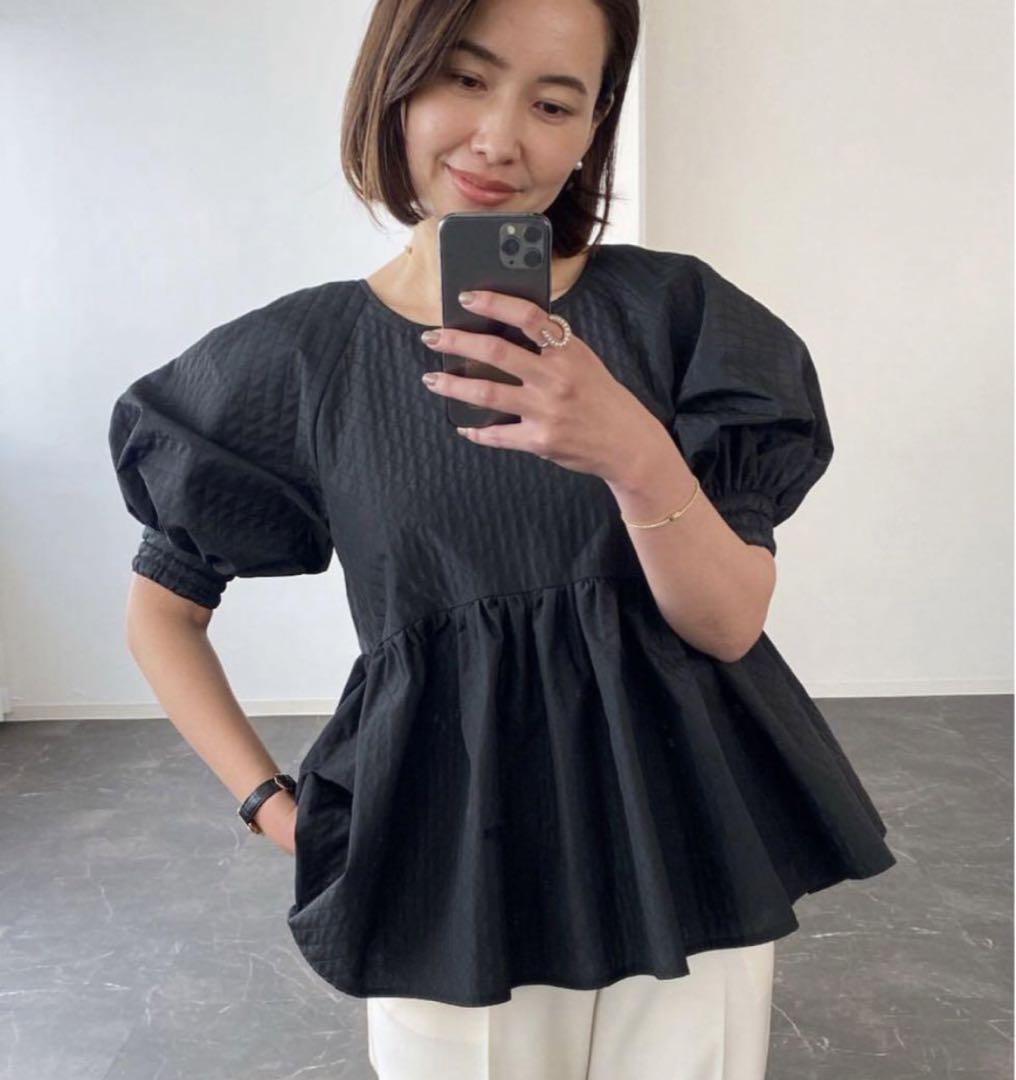 正規 ブラウス パフスリーブ ペプラム キルティング 半袖 シャツ カットソー プルオーバー