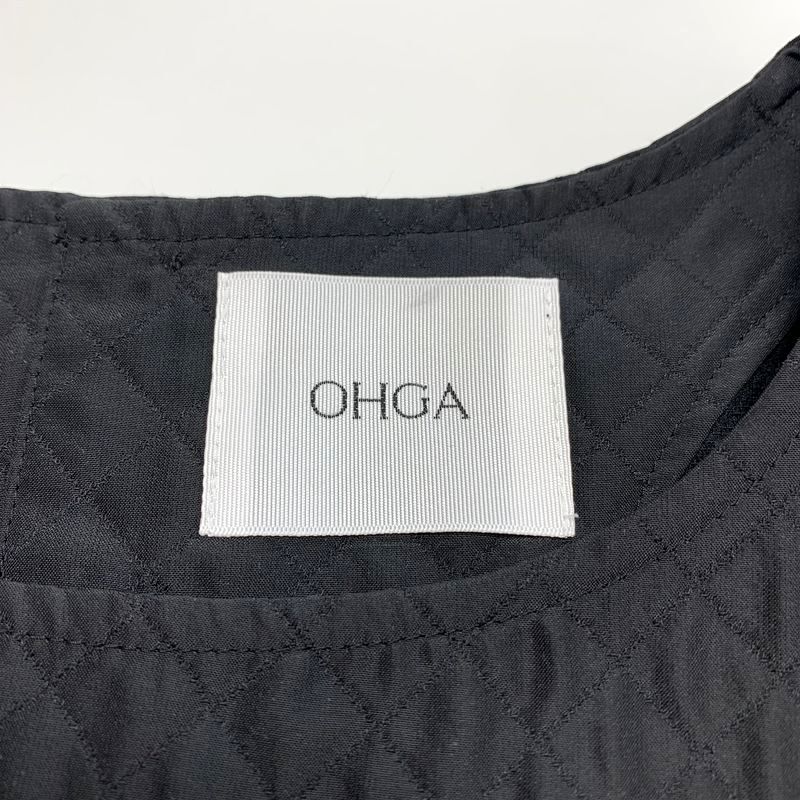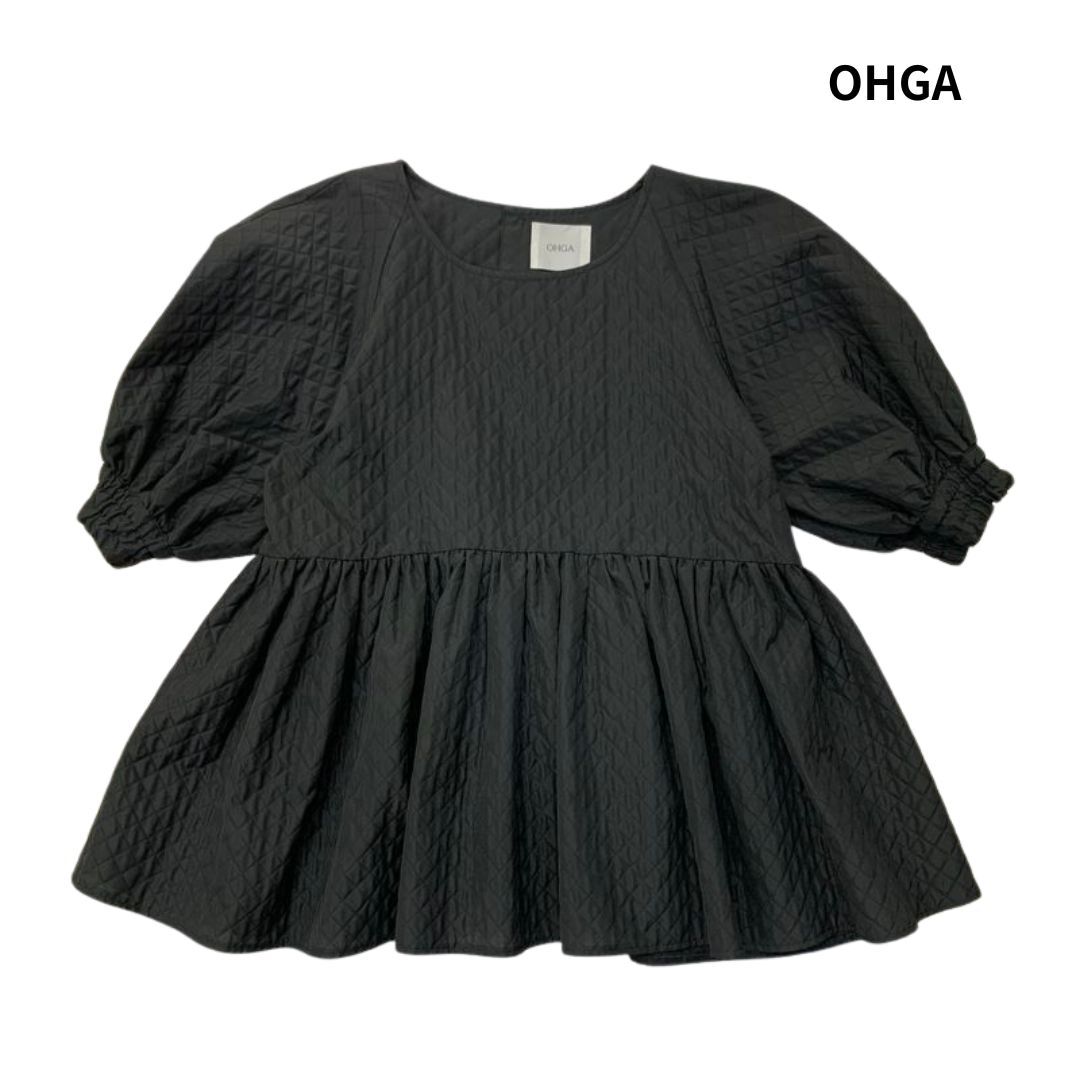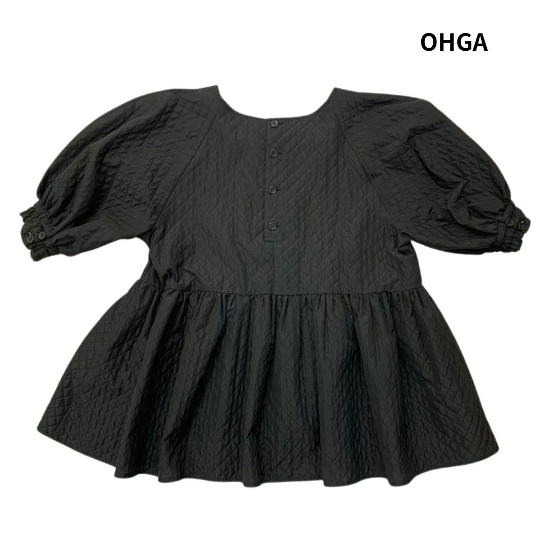 【美品】OHGA オーガ キルティングブラウス OHGA-1022-3 パフスリーブ ペプラム 半袖 ブラウス プルオーバー ブラック size:M/カットソー