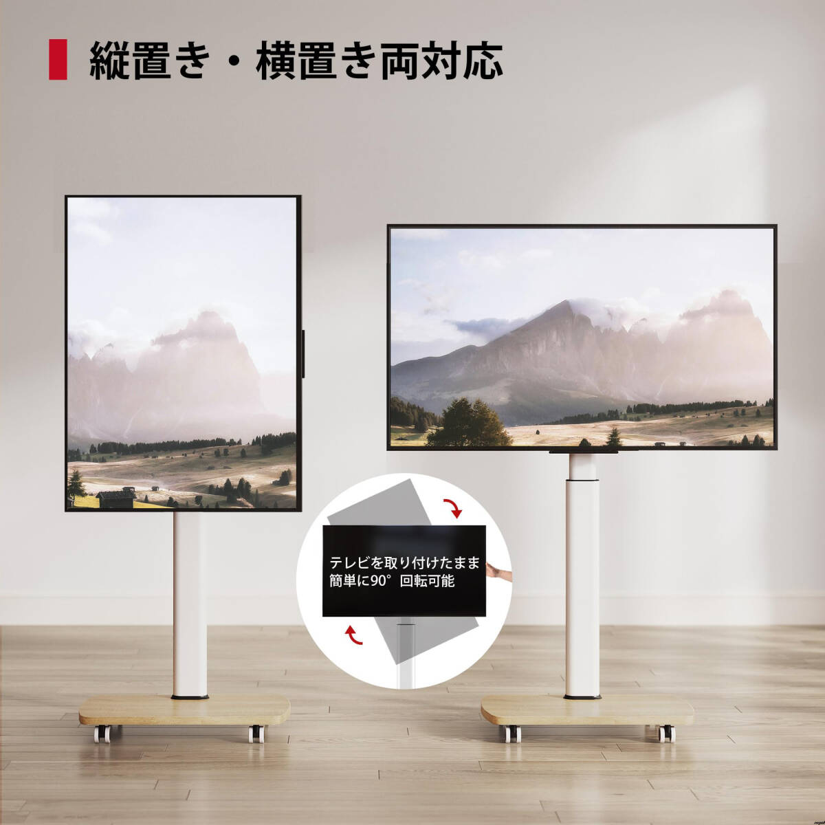 ・回転機能:テレビを取り付けたまま90°回転可能(縦横設置対応)
