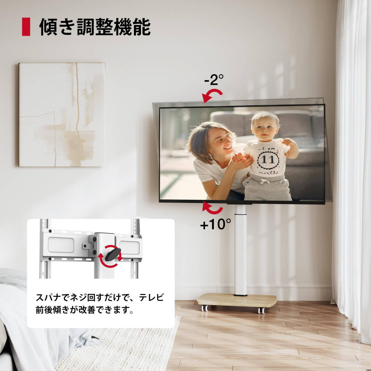 ・チルト機能:上向き10度/下向き2度