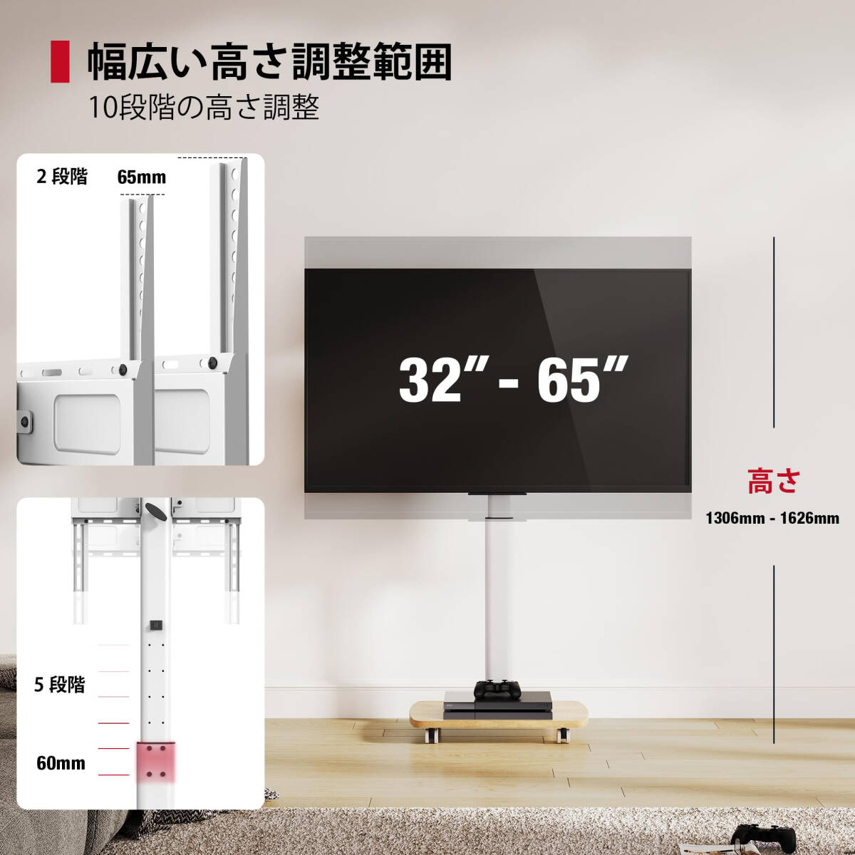 ・高さ調整:5段階(各段階65mm間隔)