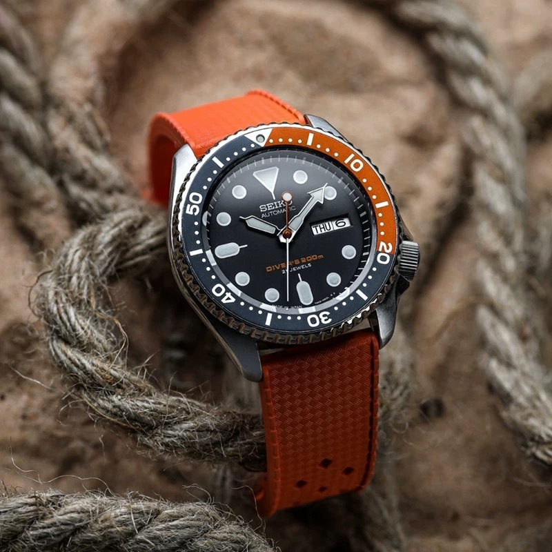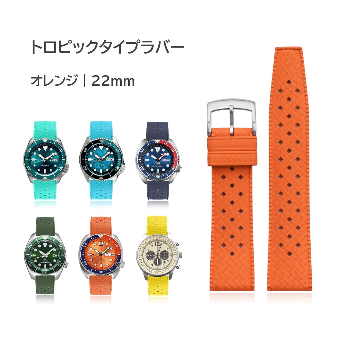 フッ素ゴム 汎用トロピックタイプラバーベルト ラグ22mm オレンジ