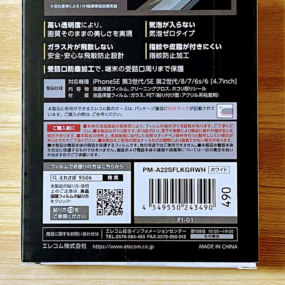エレコム iPhone SE3・SE2・8・7・6(6s)強化ガラスフィルム 高硬度10H フルカバー 液晶全面保護 シートシール ホワイトフレーム 490