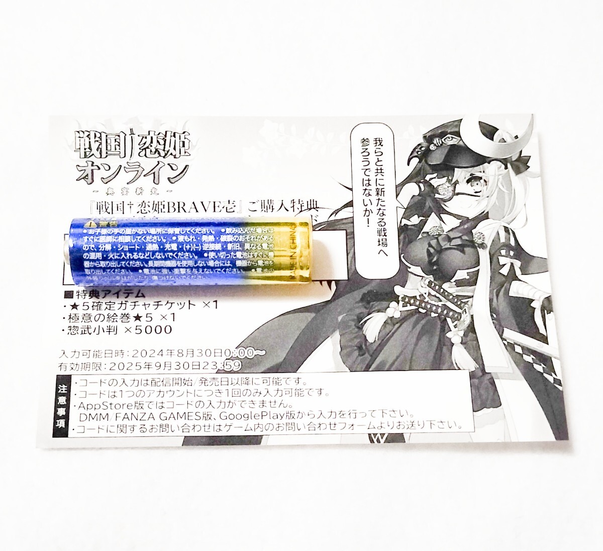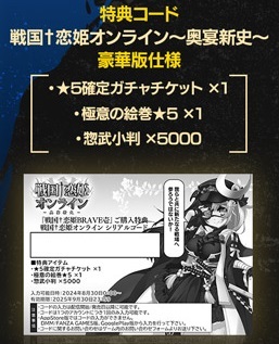 パッケージ豪華版特典 戦国†恋姫オンラインX 奥宴新史 特典シリアルコード(豪華版仕様) ★5チケ 極意の絵巻★5 戦国†恋姫BRAVE壱 BaseSon