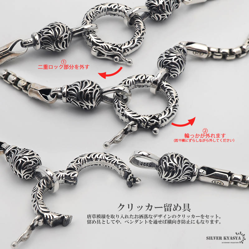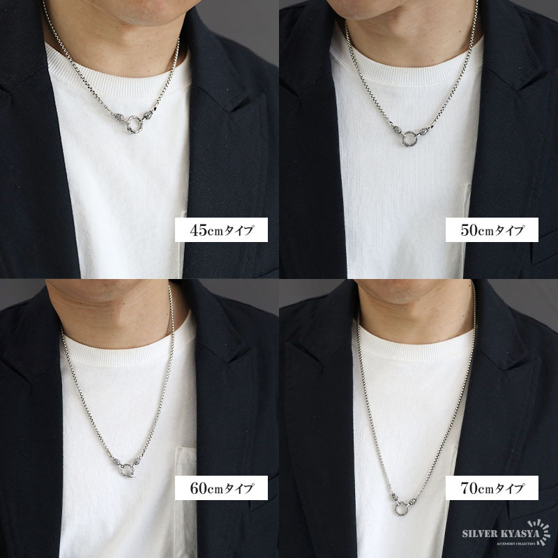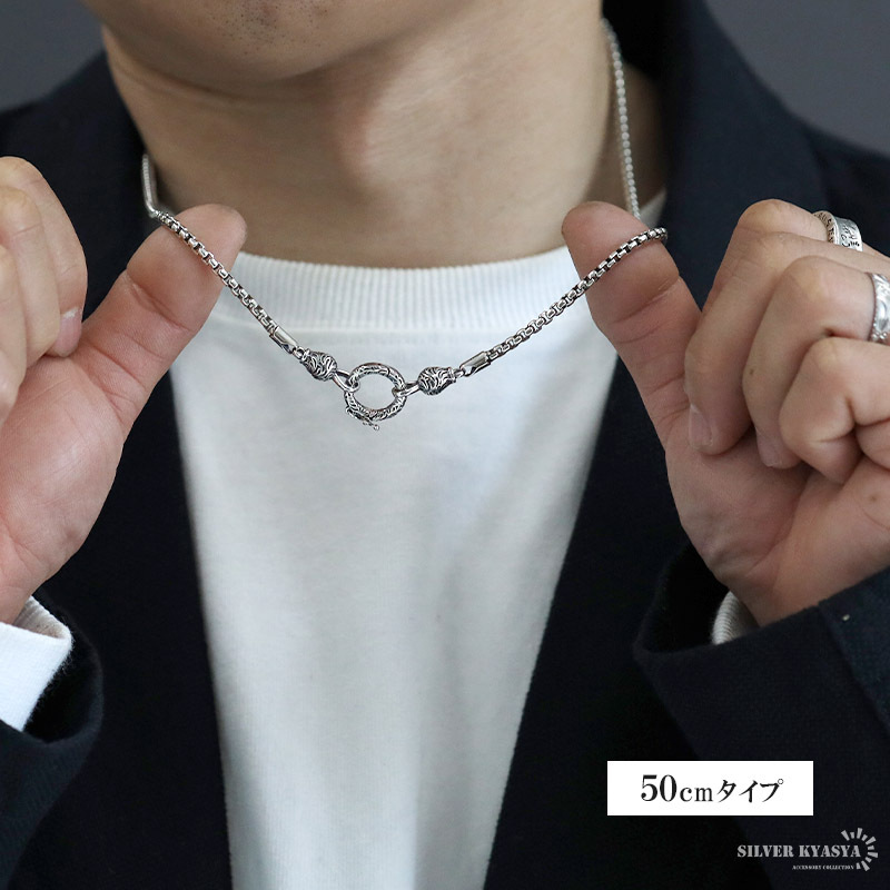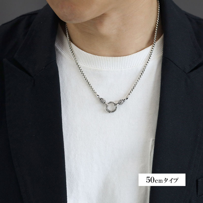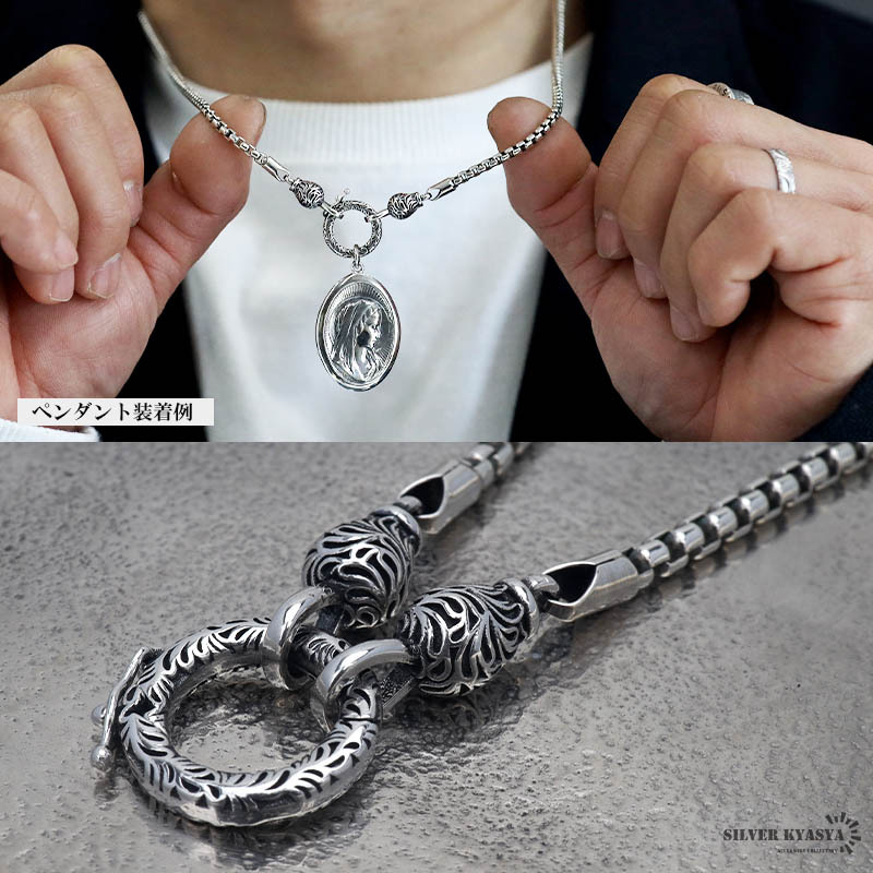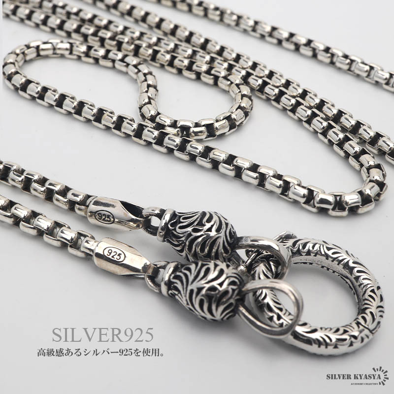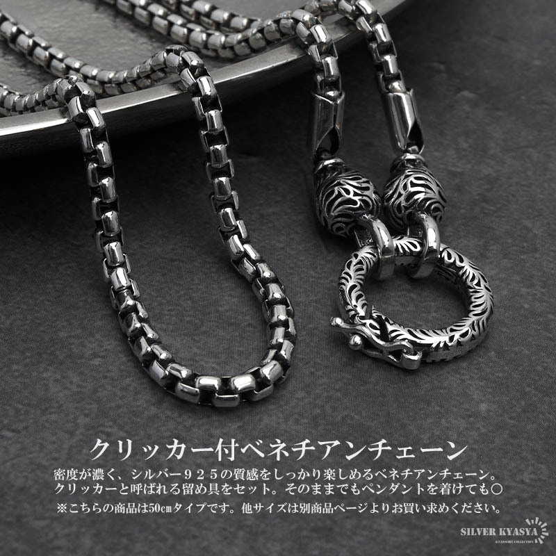 シルバー925 ベネチアンチェーン 50cm チェーンネックレス メンズ 唐草 クリッカー ペンダント 横向き防止 つけっぱなし