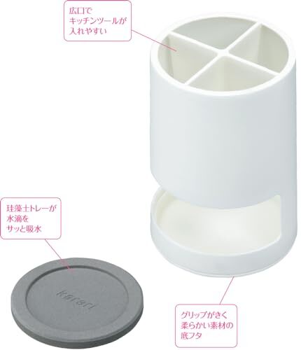 アネスティ(株) 珪藻土 水切り karari ツールスタンド 丸型 ホワイト 約直径10cm×高さ15cm HO1946