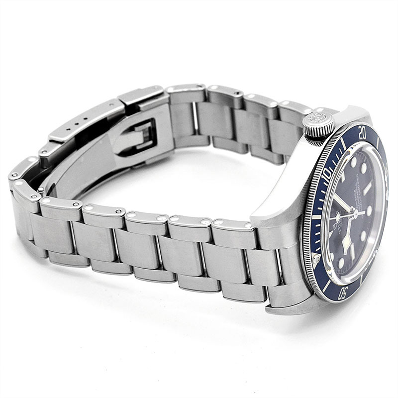 店長メモ | チューダーが1958年に発表した"サブマリーナ ビッグクラウン Ref.7924"からインスピレーションされたのが"ブラックベイ フィフティエイト"になります。 こちらは2020年に新しく加わったブルーのベゼルとダイヤルのモデルです。 ブラックベイを象徴するイカサブ針を採用したヴィンテージ感溢れるデザインながら、ムーブメントには自社製キャリバー"MT5402"を搭載しパワーリザーブは70時間を誇ります。 |