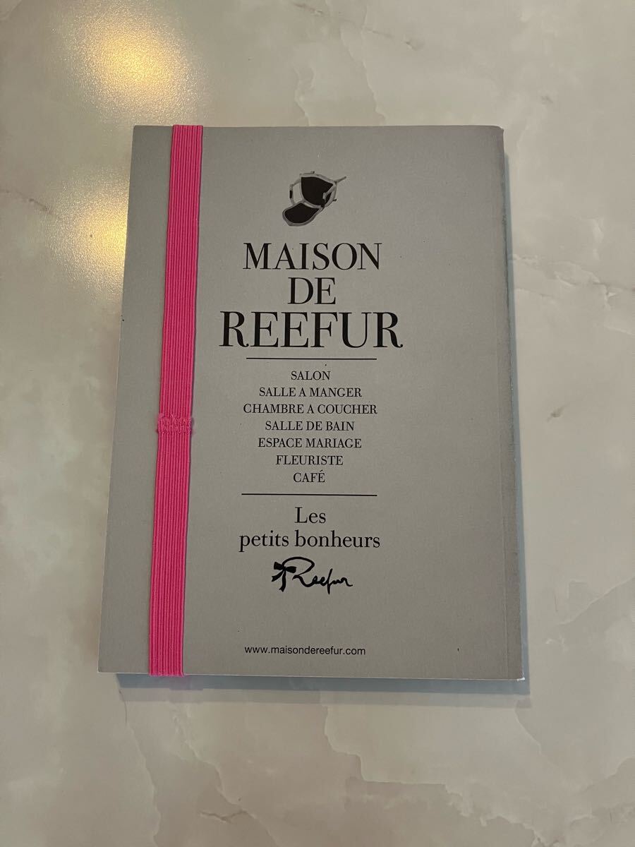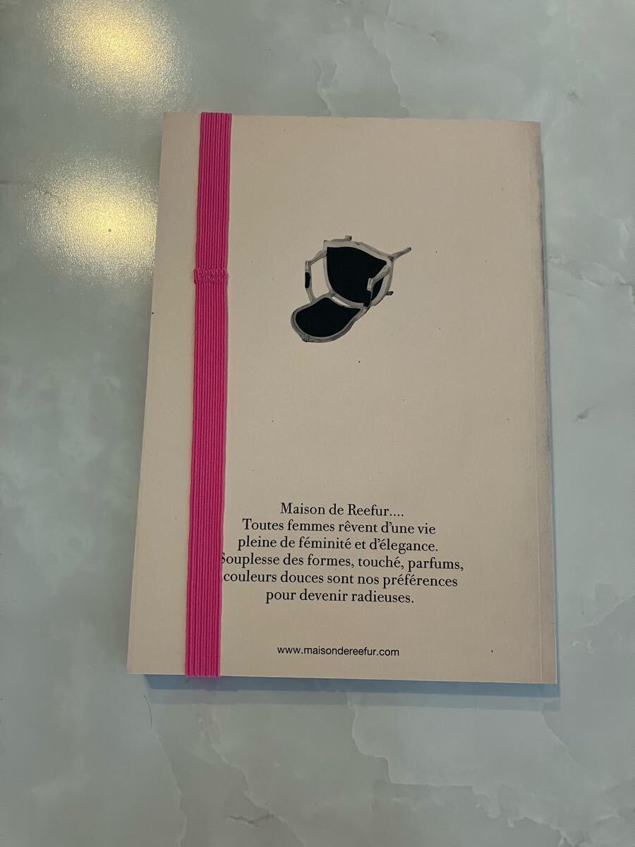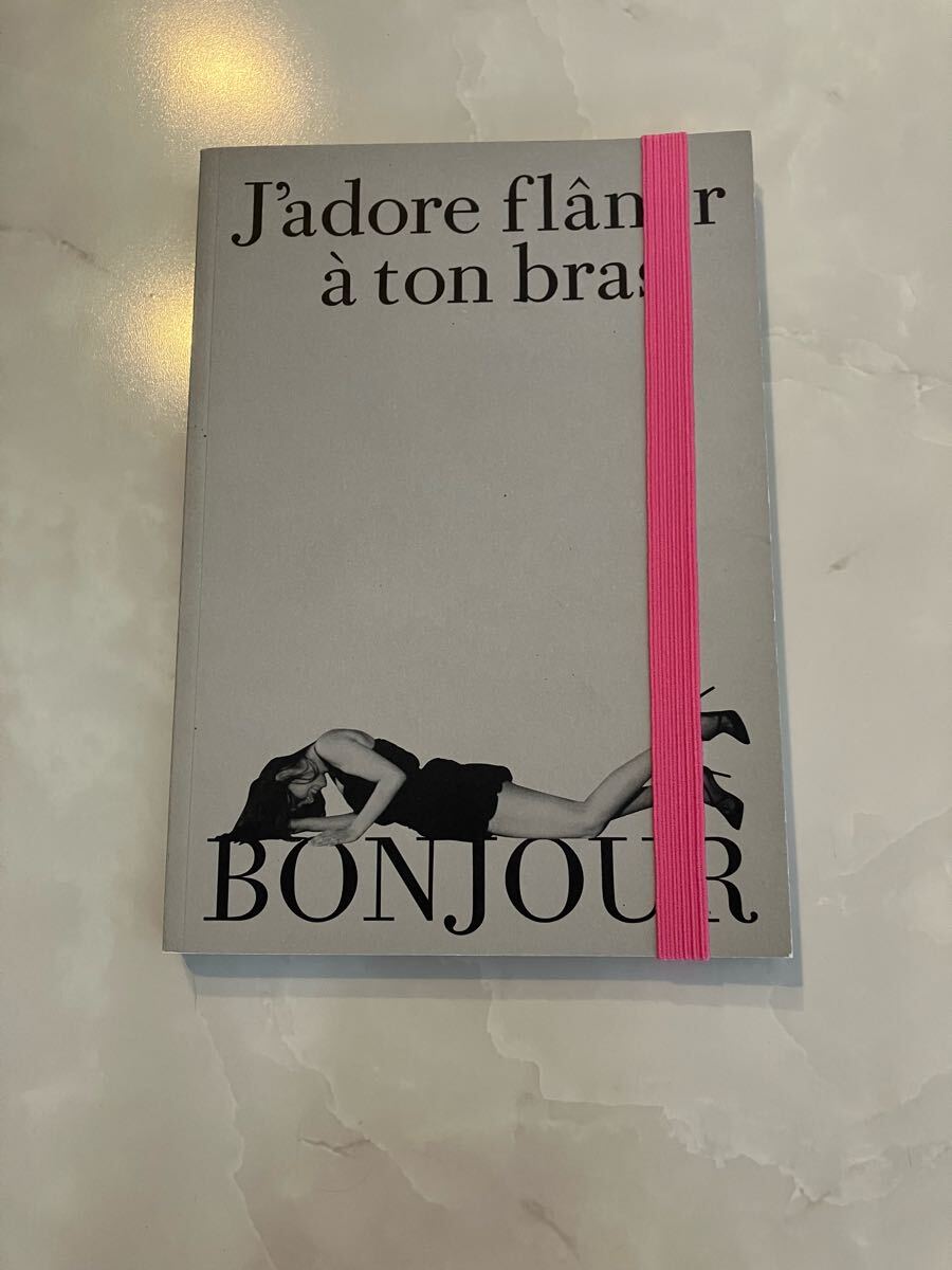 まるで見た目は洋書のような、とてもオシャレなオリジナルノートは、「BONJOUR」と、「J'adore flaner a ton bras.」=「あなたと腕を組んでお散歩するのが大好き」という意味キュートなメッセージ入りです。