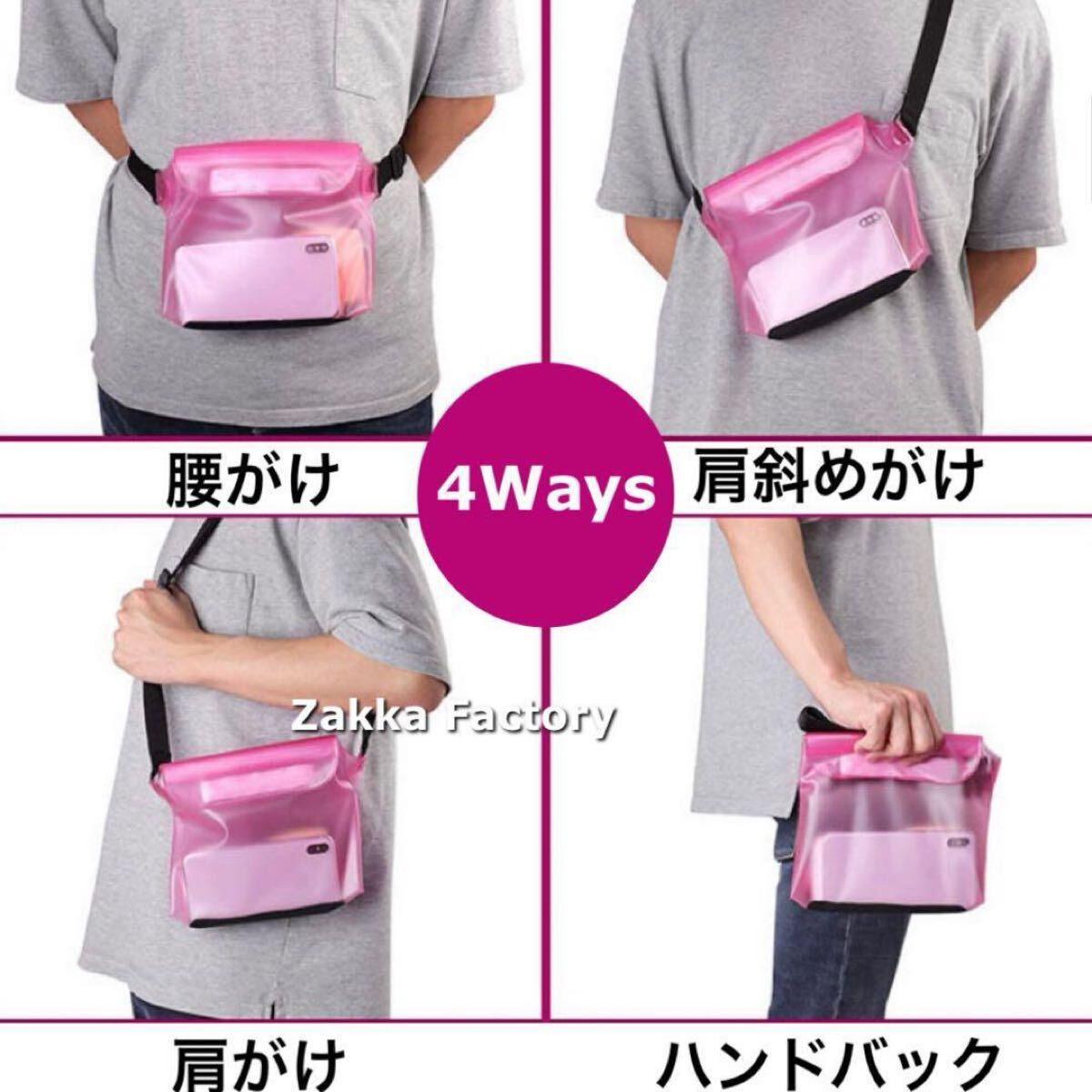 首掛け、手持ち、腰掛け、ショルダー型、4Waysの防水バッグ 防水ポーチ、雨の日の防水バッグとして活躍とても便利です♪