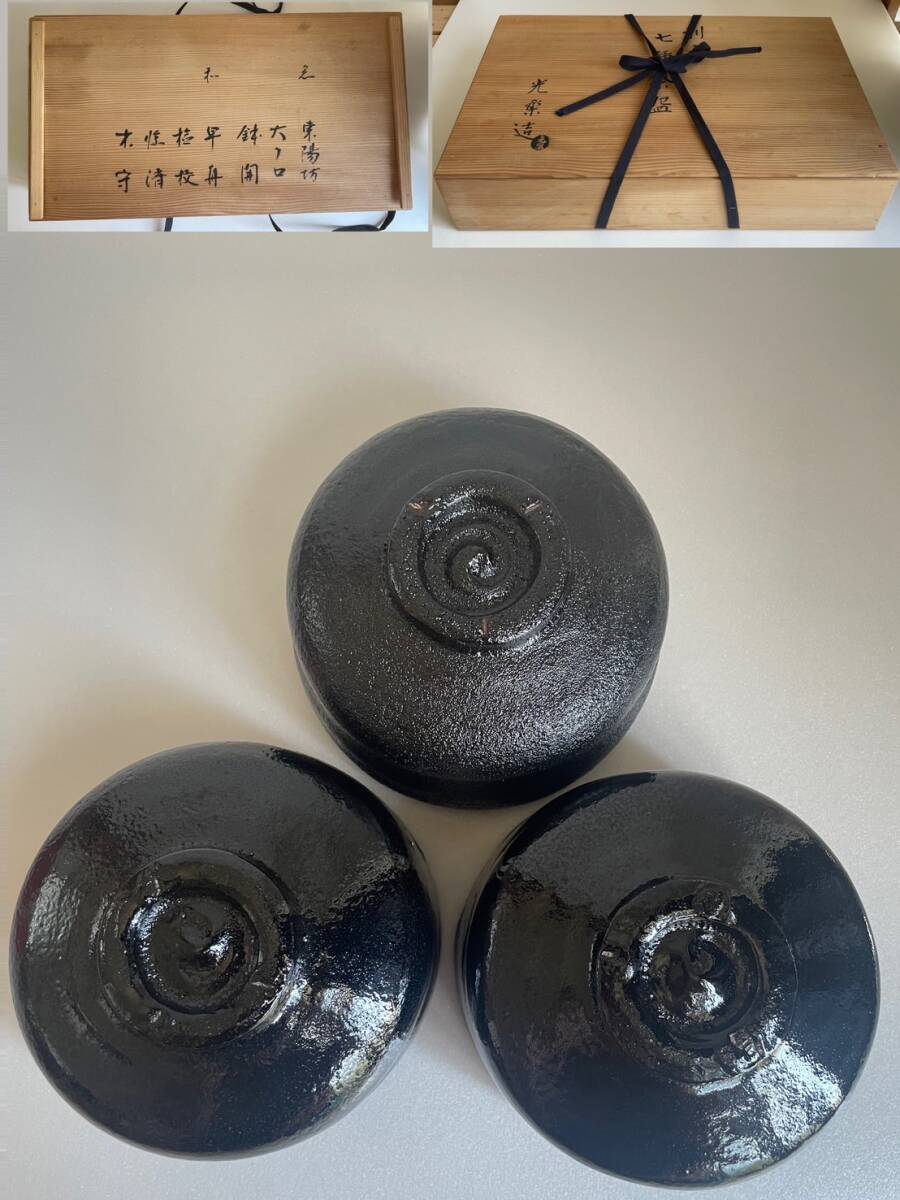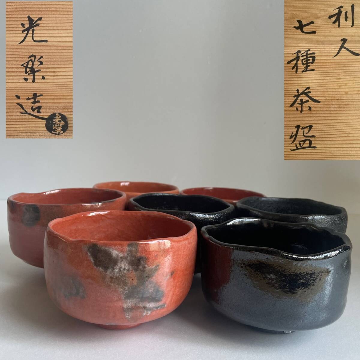 【和美】渡辺光楽造 利人 七種茶碗 共箱 茶道具 本物保証 美品 楽焼 黒楽 赤楽 茶碗 80