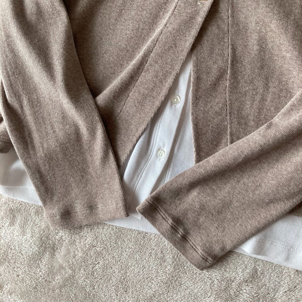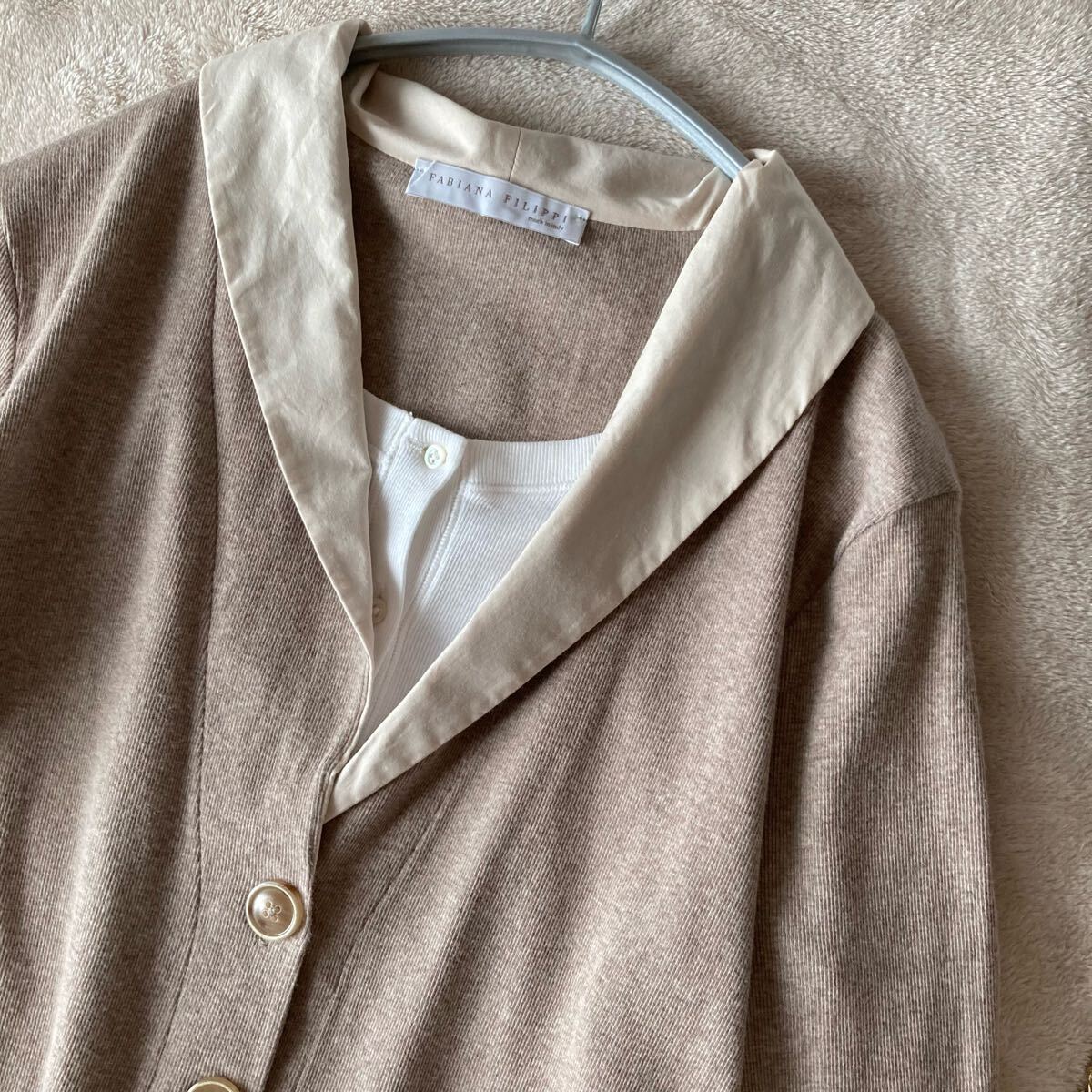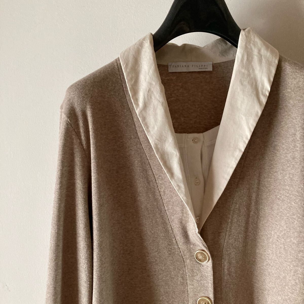 *只今ドゥロワーなどの高級なカシミヤニットをたくさん出品中です。 ファビアーナフィリッピのコンビカーディガンです。 とろとろのとても上質なコットン素材。 非常に伸びが良く、柔らかなハイゲージの素材、 さらりとしたドライ感の肌触りです。 カラーはシックなモカグレージュ。 重ね着風の上品なデザイン、 こなれた定番のゆるいシルエット。 上質な大人のスタイルに。 ■■ 素材■■ コットン 94 ポリウレタン 6 % ■■ サイズ ■■ 【L】肩幅 42 袖丈 57 身幅 48 着丈 61 cm ■■ 状態 ■■ 着用は1.2回程度、薄く通常範囲の着用感はございますが目立つダメージのないまだまだ綺麗な状態です。 ※繊細なニット類は一回着用でも着用感が感じられる場合もございます。 ノークレームノーリターンとさせて頂きますので自己紹介をご確認の上ご入札をお願いいたします。 その他にも上質なブランドをたくさん出品しております。 |