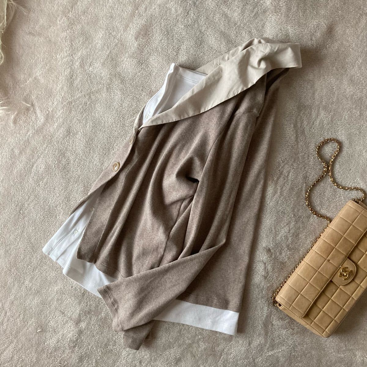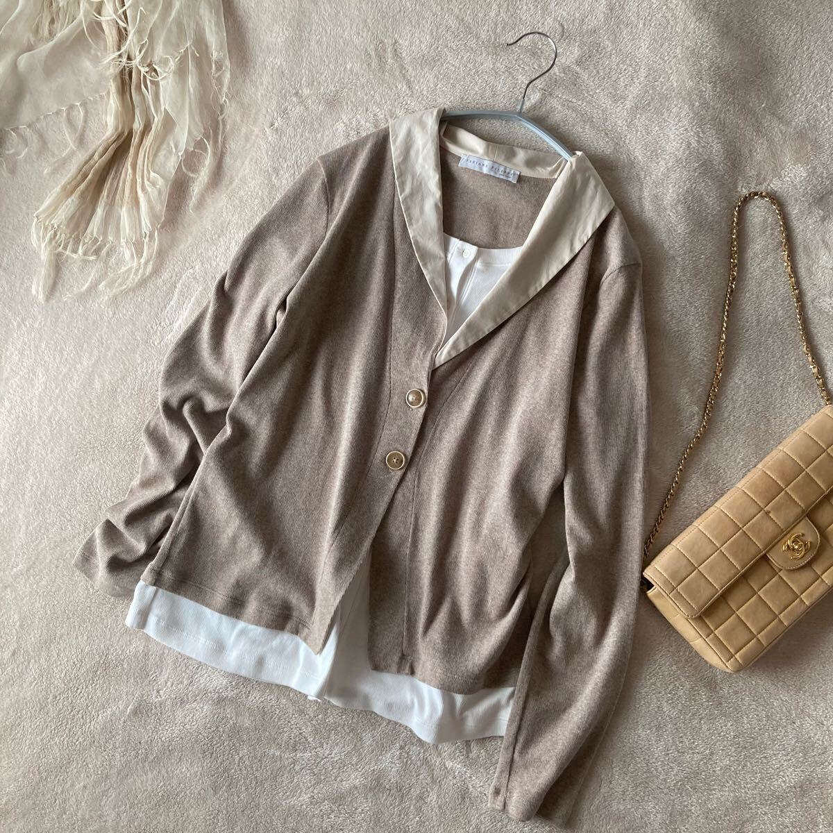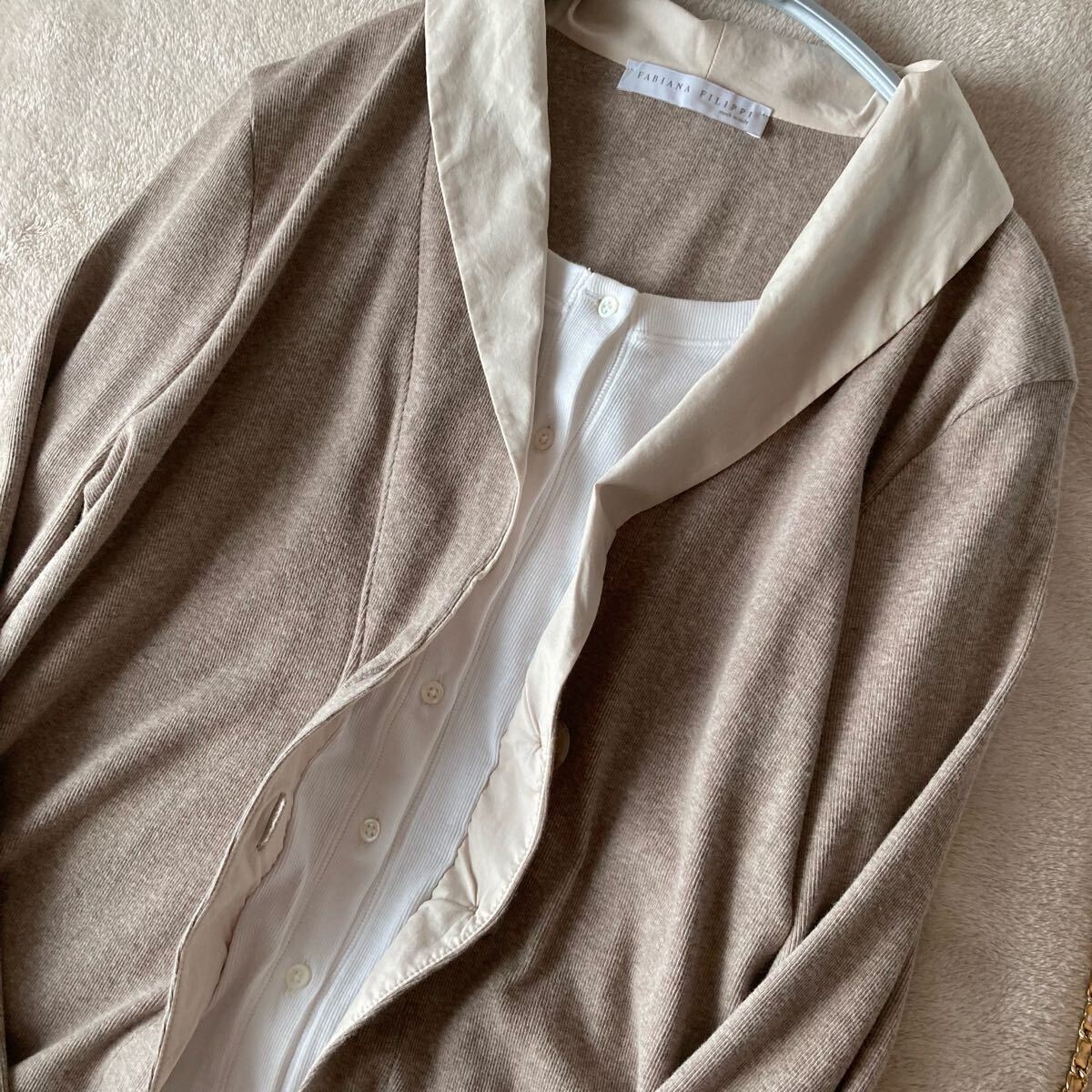 *只今ドゥロワーなどの高級なカシミヤニットをたくさん出品中です。 ファビアーナフィリッピのコンビカーディガンです。 とろとろのとても上質なコットン素材。 非常に伸びが良く、柔らかなハイゲージの素材、 さらりとしたドライ感の肌触りです。 カラーはシックなモカグレージュ。 重ね着風の上品なデザイン、 こなれた定番のゆるいシルエット。 上質な大人のスタイルに。 ■■ 素材■■ コットン 94 ポリウレタン 6 % ■■ サイズ ■■ 【L】肩幅 42 袖丈 57 身幅 48 着丈 61 cm ■■ 状態 ■■ 着用は1.2回程度、薄く通常範囲の着用感はございますが目立つダメージのないまだまだ綺麗な状態です。 ※繊細なニット類は一回着用でも着用感が感じられる場合もございます。 ノークレームノーリターンとさせて頂きますので自己紹介をご確認の上ご入札をお願いいたします。 その他にも上質なブランドをたくさん出品しております。 |