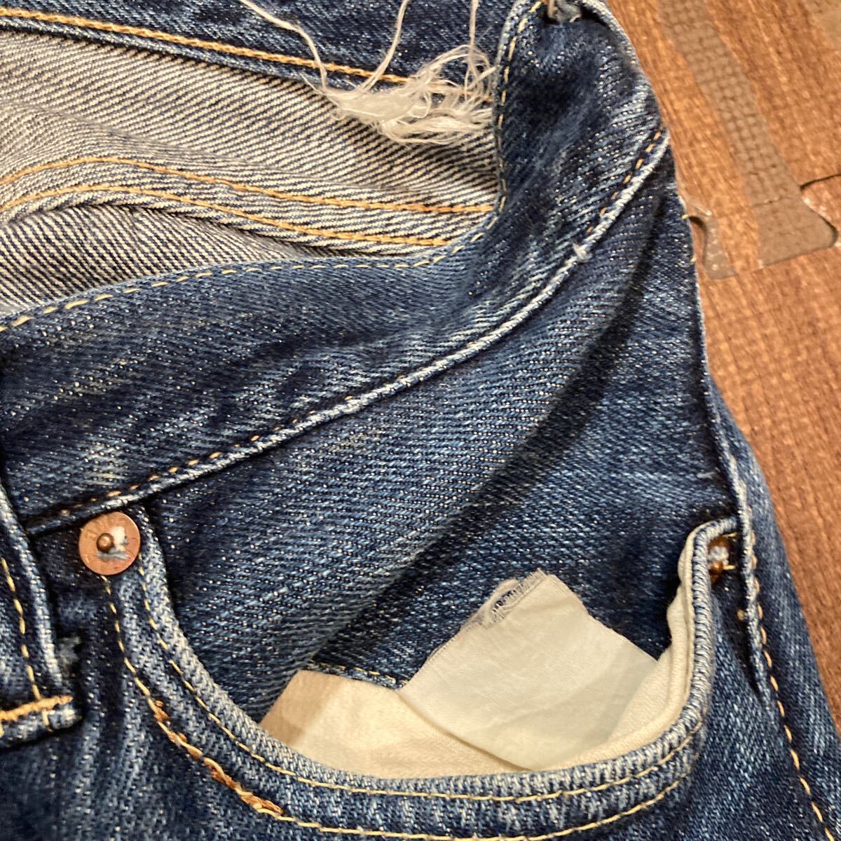 シュガーケーン デニム 30インチ 洗濯でタグが腰、ポケット共に破損してしまっています。裾に折り返しの擦れ、自転車のギアに引っ掛けた傷があります。画像で確認下さい。実寸は、洗濯後、ウエスト幅38センチ、股下77センチになります。