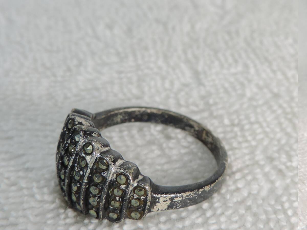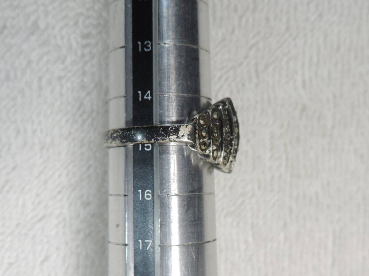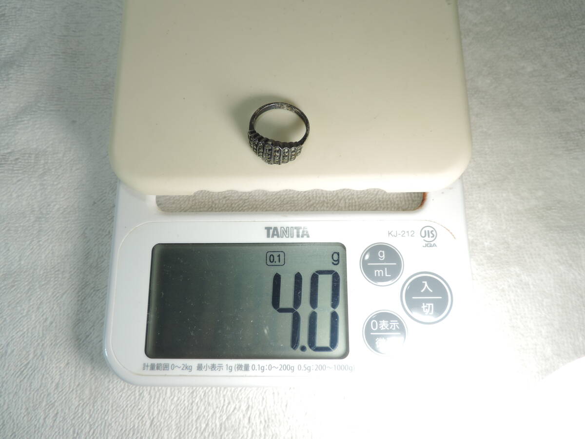 ヴィンテージ・シェル形状のストーン装飾リング約15号・925刻印有りレディース指輪・約4.0g